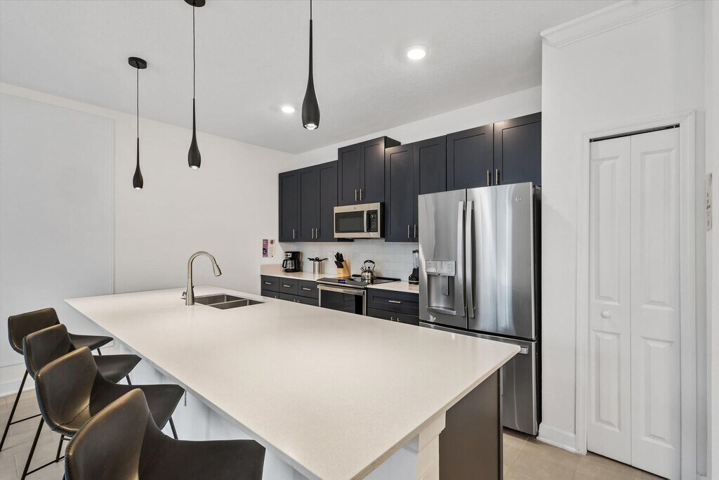 Stay in this stunning 4-bedroom townhome at Storey Lake Resort, just 15 minutes from Disney! Designed with amazing attention to detail, it features a modern kitchen, cozy living area, private pool, and super chic decor. Kids will love the Jurassic Park and Lion King-themed bedrooms. Enjoy resort pools, lazy river, water slides, and more! Welcome to this stunningly chic 4-bedroom townhome, masterfully designed with amazing attention to every detail, offering an unforgettable stay for up to 12 guests. The stylish open-concept living area flows seamlessly into a modern, fully equipped kitchen—perfect for shared meals and cozy family time. Step outside to your private, heatable pool for sun-soaked relaxation in total style. On the first floor, a sophisticated queen bedroom with a nearby bathroom awaits. Upstairs, the master suite dazzles with elegant decor, a king bed, and a private bath. Kids will fall in love with the two spectacular themed bedrooms: a Jurassic Park adventure and a Lion King paradise, each featuring two double beds and a shared bathroom. Located in the best area—just minutes from Disney and top shopping and dining—this home offers all the comfort you deserve, wrapped in exceptional style. Amenities include free WiFi, washer and dryer, complimentary parking, and a welcome kit (replenishments not included). Every inch of this home promises a magical, stylish, and unforgettable stay! Optional extras like pool heating and BBQ rental are available for an additional fee. Storey Lake Resort has the perfect location just 10 minutes from all major attractions and theme parks in Orlando (Walt Disney World, Universal Resort and Sea World). You will find fantastic resort amenities for the whole family to enjoy with a tiki bar, a resort-style pool with slides and lazy river, sports court, mini-golf, kaiak and fitness center. There are 2 clubs inside the property, one of them with a themed pirate pool that kids will love is just walking distance from the house. Located just off Osceola Parkway, the resort has easy access to restaurants, shopping, and supermarkets, everything with a just 5 minutes drive distance. Quiet hours are between 22:00 and 8:00. [SI]