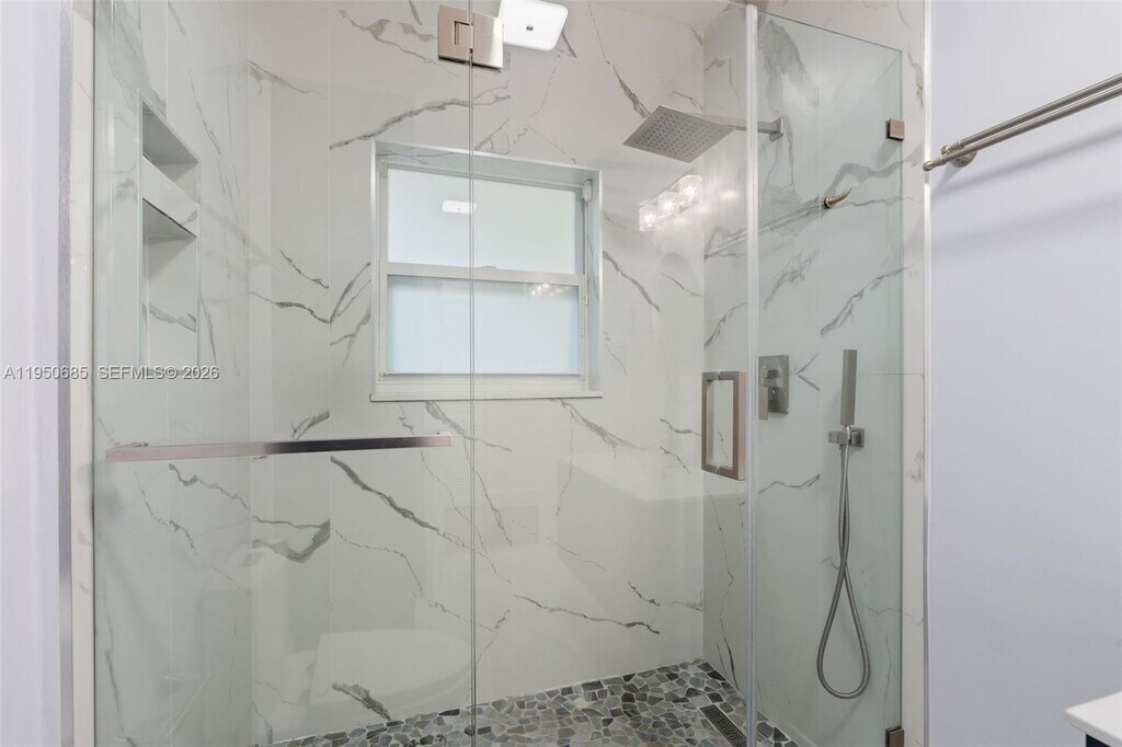 Beautifully maintained single-family property featuring a 2/1 main house plus a detached 1/1 cottage. The main house offers inviting living spaces with warm wood floors and abundant natural light. The kitchen features wood cabinetry, updated stone countertops, and excellent storage. The modern main-house bathroom has been fully updated, showcasing a sleek walk-in shower. The generously sized primary bedroom includes a major custom closet large enough to function as its own room. The detached 1/1 cottage provides wonderful flexibility—perfect for guests, in-laws, or a private workspace. The cottage bathroom has also been updated, while the kitchenette retains its original charm. Enjoy the private, resort-style backyard with lush landscaping, brick patio, and sparkling pool— ideal for entertaining or relaxing. A perfect blend of charm, comfort, and outdoor living. MLS # A11950685