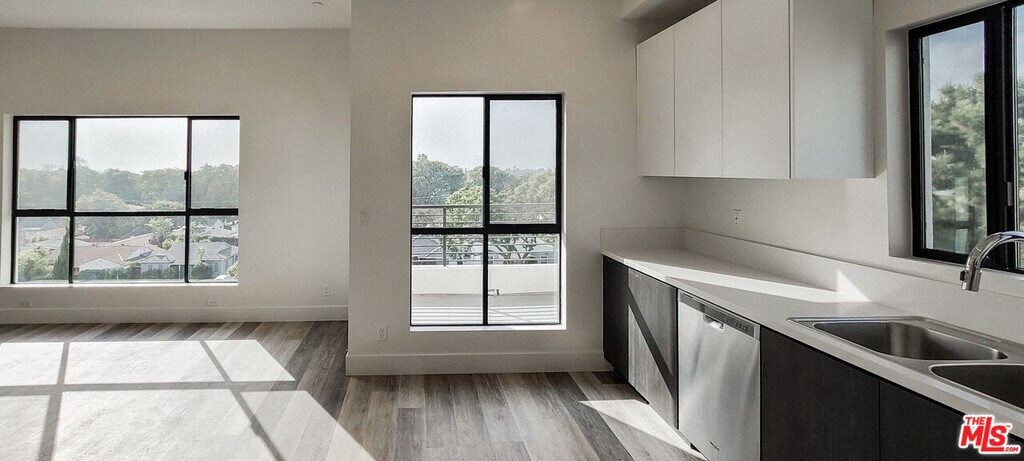 Gorgeous, light-filled penthouse with spectacular sunset views in trendy West LA. Built in 2022, this spacious, sun-drenched 2-bedroom residence features high ceilings, three exposures and an open, loft-style layout designed for contemporary living. The quiet rear-facing unit offers exceptional privacy with no one above and only one shared wall. The living and dining areas flow seamlessly to an oversized balcony and a fully equipped chef's kitchen ideal for gracious entertaining. The beautifully designed kitchen showcases high-end Italian-style cabinetry, stone countertops, stainless steel appliances, a gas range, built-in microwave with vented hood, refrigerator with ice maker, generous storage, and a large double pantry. The primary suite includes a walk-in closet and an en-suite bath with shower-over-tub. The spacious second bedroom enjoys two exposures and a wall of mirrored closets. Designer-tiled bathrooms, a full guest bath, a large linen closet, wide-plank flooring, high ceilings, crown moldings, recessed lighting, and side-by-side full-size in-unit laundry complete this exceptional home. Electric vehicle charging available. Welcome home to a peaceful oasis from the city. Ideally located in quiet pocket neighborhood, just blocks from the Expo Line and moments from Sawtelle's trendy dining and shopping. Easy access to the 10 and 405, conveniently to UCLA, Westwood, Century City, Beverly Hills, Santa Monica, Brentwood, and local beaches. Most pets welcome! Photos are of the identical unit, one floor lower with a prior tenant's furniture. The views from PH3 are even better! The 2nd bedroom photo is virtually staged as a suggestion, it is large enough to acommodate a king sized bed. Available April 1, possibly sooner. MLS# 26652383