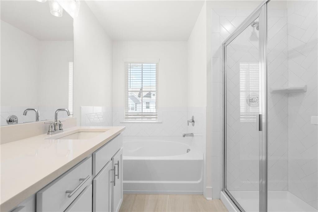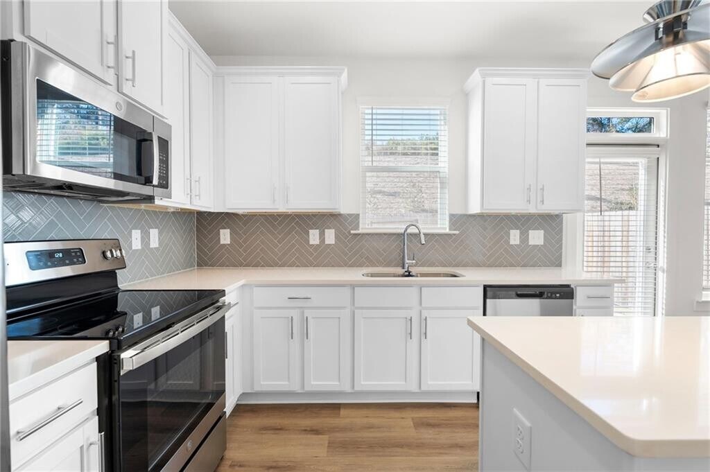 Discover contemporary living in this stunning 3-bedroom,2.5-bath townhome filled with natural light and thoughtful upgrades. The open-concept main level features a modern kitchen with granite countertops,white cabinetry,and stainless steel appliances,including a side-by-side refrigerator. Hardwood floors enhance the main level,while plush carpeting adds comfort upstairs. The second floor offers a spacious loft,ideal for a home office,second living area,or flex space. The primary suite includes a spa-like bath with separate tub and shower,double vanity,and a large walk-in closet. Two additional bedrooms provide ample space for family or guests. Enjoy a fully fenced yard,perfect for pets,with lawn care maintained by the HOA. Additional highlights include a 2-car garage plus driveway parking. Located in a beautiful new community in Conyers,just minutes from shopping,grocery stores,and easy access to I-20.