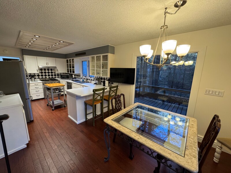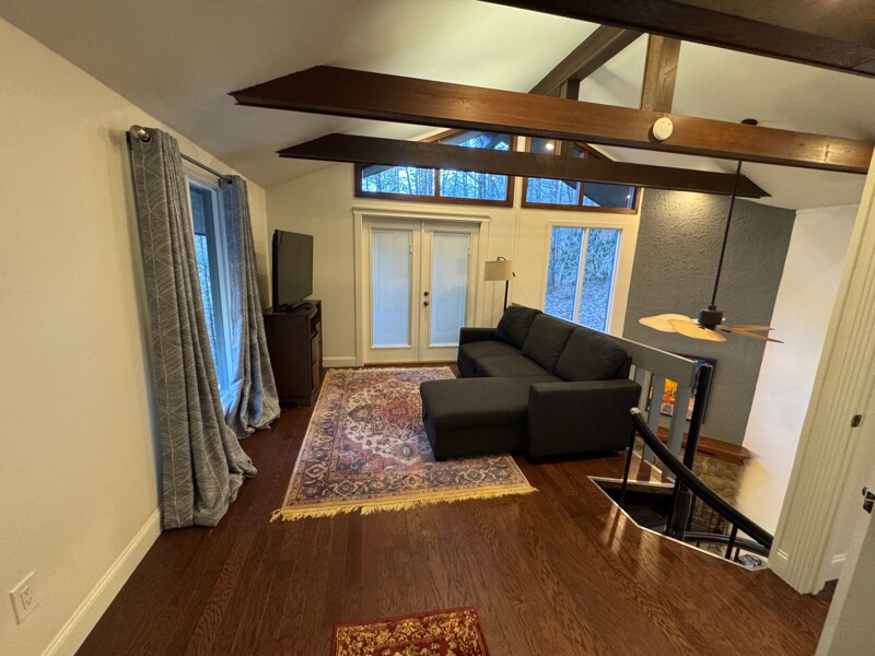 Property Id: 2262067 Totally renovated 2 bedroom 2 bathroom, family room, full kitchen with counter, 2 LED TVs, vaulted ceilings, 2 car garage with storage room, extra large 2 level deck, wood burning fireplace in the beautiful mountains located inside city limits close to grocery store, post office, fire department in a secure location but minutes from downtown Gatlinburg and the Great Smoky Mountains National Park. Furnished now but will remove if not needed.