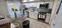Step into this stunning, sun-drenched townhouse offering a dramatic two-story living room, welcoming you into a bright and airy open-concept living space with modern finishes. The gourmet kitchen is a chef's dream, featuring crisp quartz countertops, chic white shaker cabinets, and a full suite of stainless steel appliances, including an LG French door refrigerator and a premium Samsung induction stove with dual ovens. The large, stainless steel-topped chef's island provides the perfect spot for meal prep and casual dining. Upstairs, you'll discover a versatile loft space perfect for a home office, den, or play area. Both spacious bedrooms serve as private retreats, each boasting large sliding glass doors that open to their own balcony. The home's 2.5 bathrooms have been completely remodeled with designer finishes. You will love the spa-like master bath, featuring stylish patterned tile floors, a walk-in shower with floor-to-ceiling tile, and elegant brushed-gold fixtures. Need more space? The fully finished basement offers another entire level of flexible living area for a gym, media room, or guest space. The HOA handles all common area landscaping and snow removal right up to your front door. As a resident, you'll enjoy exclusive access to the community pool, tennis courts, and pickleball courts. This home is perfectly situated with an easy drive to major highways (Routes 206, 287, 78) and is just minutes from the shopping, dining, and convenience of the Hillsborough Promenade.