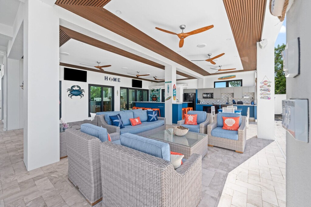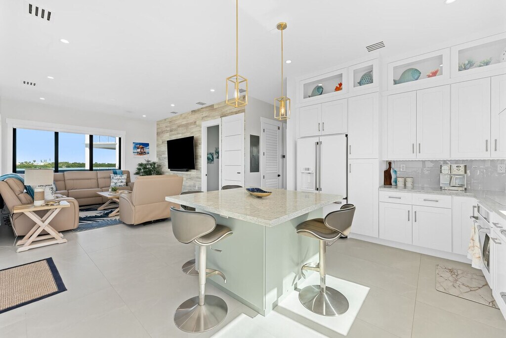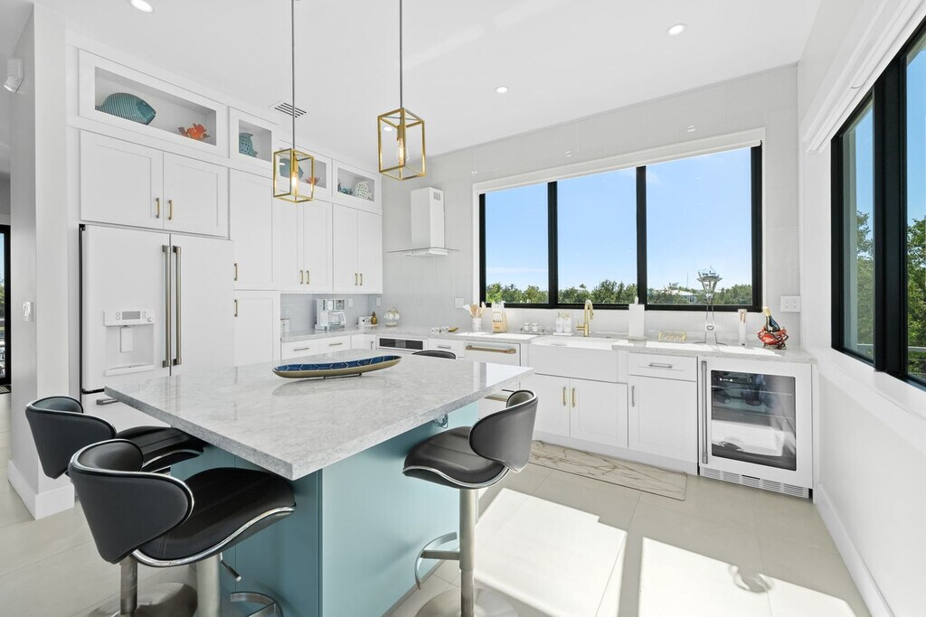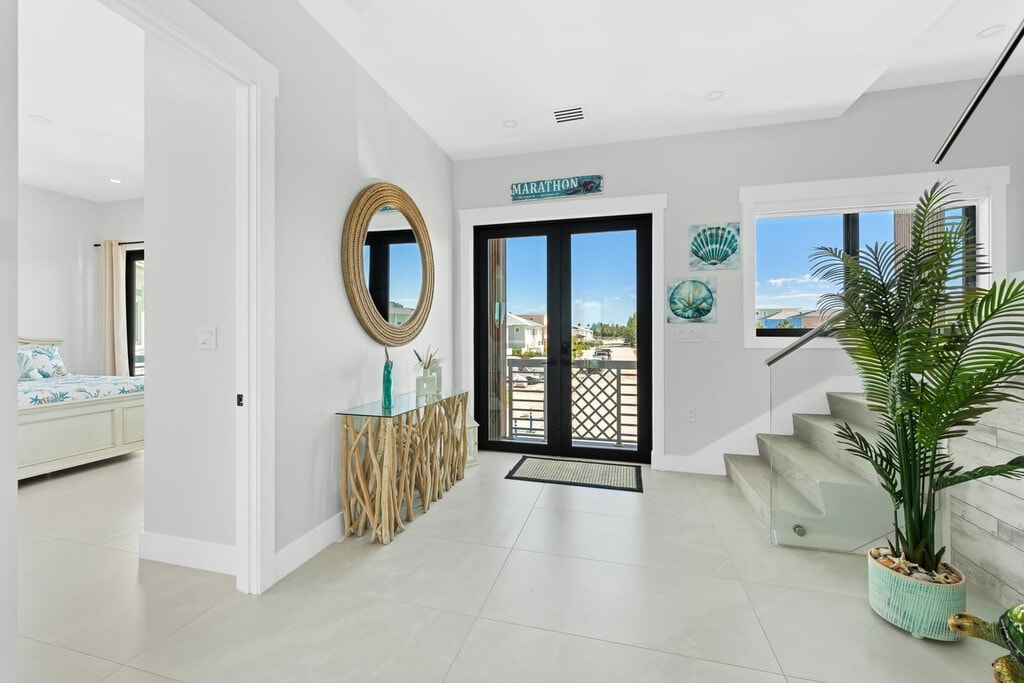 Feel at home in this luxurious 5-bedroom, 5.5-bath waterfront getaway in Marathon, FL. This brand-new home offers an elevator for easy access to all floors. This home features an open-concept living area, a fully equipped indoor kitchen and an outdoor kitchen, high-speed Wi-Fi, and a 70-foot dock. The living room offers a comfortable leather sectional with cup holders, pillows, throw blankets, a smart TV, a soundbar, cozy sofa chairs, stylish coffee tables, and reading lamps. The kitchen is equipped with a microwave, stove, oven, toaster, blender, coffee maker, hot water kettle, double-door refrigerator/freezer, wine cooler, dishwasher, sink, plates, glasses, silverware, and pots and pans. The backyard features a lounge, TVs, a heated pool and jacuzzi, a sound system, a fire pit, a kitchen, and a bar. Pool heat is available for $250 per week plus taxes and applicable credit card processing fees. Nestled on a tranquil cul-de-sac in a waterfront neighborhood, this home is a picturesque and inviting oasis in the heart of the Florida Keys, boasting a peaceful tropical paradise that offers a perfect blend of relaxation and adventure. Nearby attractions include Coco Plum Beach (3 min away), Florida Keys Aquarium Encounters (5 min away), Dolphin Research Center (8 min away), Florida Keys/Marathon International Airport (8 min away), Crane Point Hammock (8 min away), Turtle Hospital (12 min away), Sombrero Beach (14 min away), and Key West (1 hour away). Quiet hours are from 9 PM to 9 AM. Pets are not allowed. Smoking is not allowed inside the home, and any evidence of smoking will result in odor removal and furniture cleaning fees. Parties and events are not allowed. The elevator is an added bonus and is not ADA compliant, it is not guaranteed to work in emergency situations and may be out of order from time to time. This property has exterior video cameras for the safety and security of our guests and the property. No cameras are inside or facing inside of the home. Registration Number: VACA-23-382 [SI]