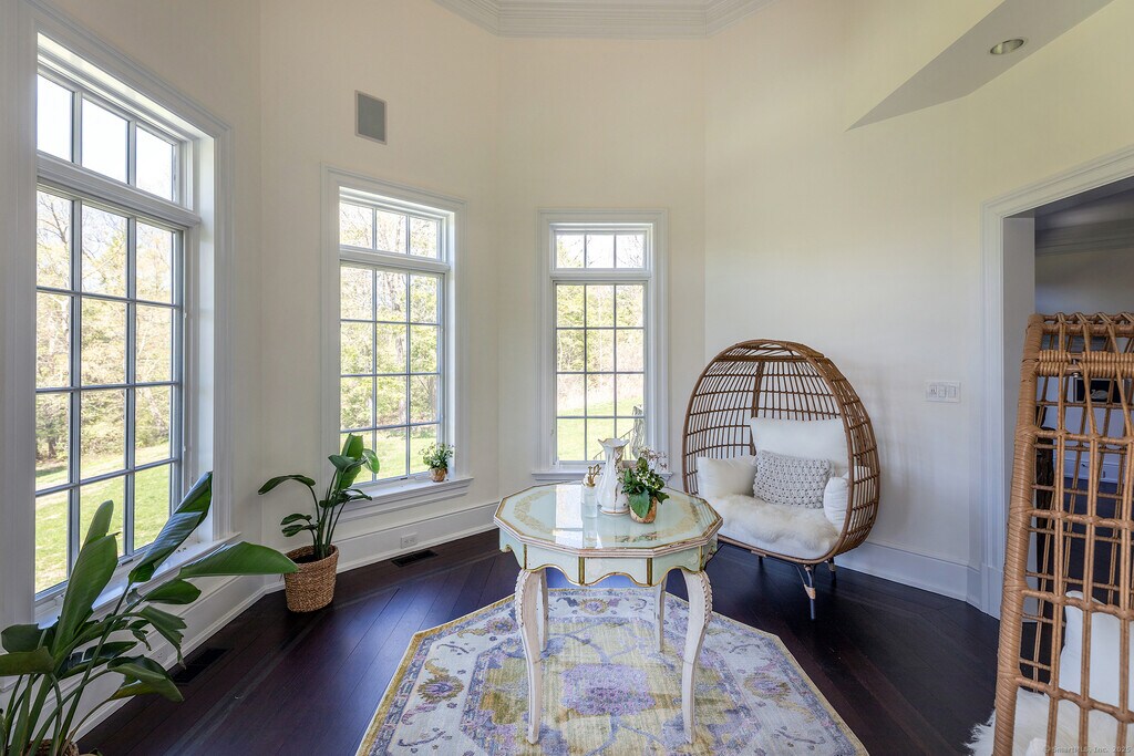 Call for Availability - Luxury rental with inground Gunite pool in the beautiful Litchfield Hills of Washington. It's long gracious driveway leads you to the formal yet comfortable country house privately set on the property for peaceful enjoyment. This location is ideal, allowing easy access to Lake Waramaug, restaurants, an abundance of hiking and walking trails, wineries, breweries and New Preston Village for boutique shopping. The home itself is quite breathtaking with high quality details that include hardwood floors, coffered and tray ceilings, gorgeous paneling, beams, built-ins and bookshelves. 18 spacious rooms include 5/6 bedrooms, 6 full and 2 half baths. The nicely sized rooms feature a gourmet kitchen, sunny sitting room overlooking the rear treetops, cozy family room with gas fireplace, formal living room and library. Additionally, there are two recreation rooms (one on each floor) and a TV room tucked in the corner of the house. French doors on both sides of the living room lead to separate covered bluestone terraces. There is an audio system, central vac, and attached garage. Relax and enjoy the summer in this special place. MLS# 24104612