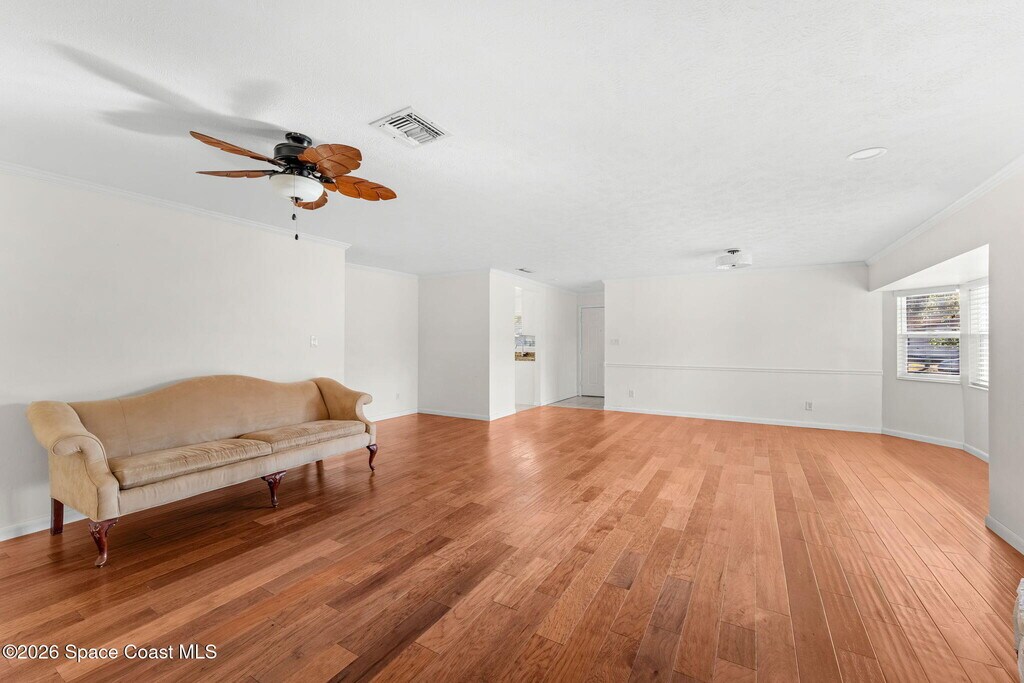 Welcome to a beautifully maintained home offering an inviting open concept layout designed for both comfortable living and effortless entertaining. Freshly painted interiors create a bright,modern feel,while expansive windows fill the space with natural light,enhancing the home's warm and welcoming atmosphere. The spacious living and dining areas flow seamlessly,making everyday living easy and functional. Step outside to a large,fenced backyard perfect for outdoor gatherings and enjoy your own private retreat. Located in a quiet,established neighborhood,this home offers the perfect balance of tranquility and convenience. Just 20 minutes to the beach and approximately 45 minutes to Orlando. A well-cared-for property in an excellent location. Ready for its next great tenant to make it home. MLS # 1069602