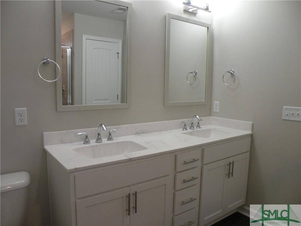 New in Chatham County off Pooler Parkway and Easthaven Boulevard. Lovely 3 bedroom, 2 1/2 bath townhome with 1 car garage and 2 extra spaces in front. Kitchen with large granite center working island, stainless appliances, 42 inch upper cabinets, large open living/dining/kitchen makes for perfect entertaining. All bedrooms on the upper level. Primary suite with trey ceiling, large ceramic shower, double vanity and walk-in-closet. Roomy secondary bedrooms and hall bath with tub shower and linen closet/storage. Laundry/mud room at garage entrance along with hall bath. Small patio faces quiet wooded area and view of pool and lake. Very easy drive to all that Pooler has to offer: shopping, hospital, interstates 16 and 95, schools, movie theaters. airport and restaurants/ New never lived in. Sorry, NO PETS OR SMOKING!!