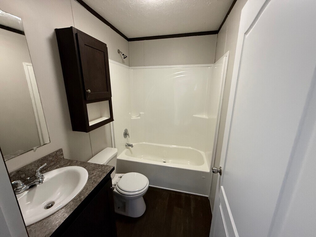 Take advantage of our limited-time Tax Season Special on this well-maintained 2018 Clayton 3 bedroom, 2 bathroom home. Featuring a bright open floor plan, this home offers a spacious living area that flows into a modern kitchen with breakfast bar seating, dark cabinetry, and black appliances. With vinyl plank flooring, comfortable carpeted bedrooms, central air, and a private primary suite with attached bath, this home is ready for you. • 2018 Clayton model • Bright open-concept living area • Kitchen with peninsula-style breakfast bar • Dark cabinetry with modern countertops • Black appliance package • Vinyl plank flooring in main areas • Carpeted bedrooms • Private primary suite with attached full bath • Two full bathrooms with tub/shower combos • Central air conditioning • Washer/dryer hookups • Private driveway • Move-in ready condition