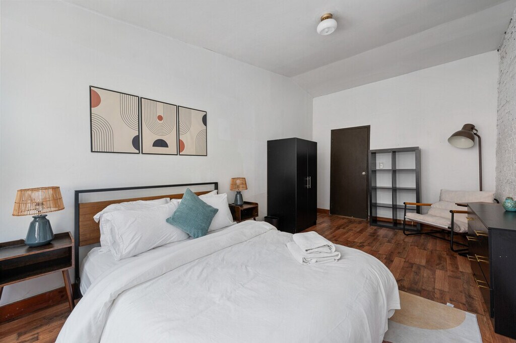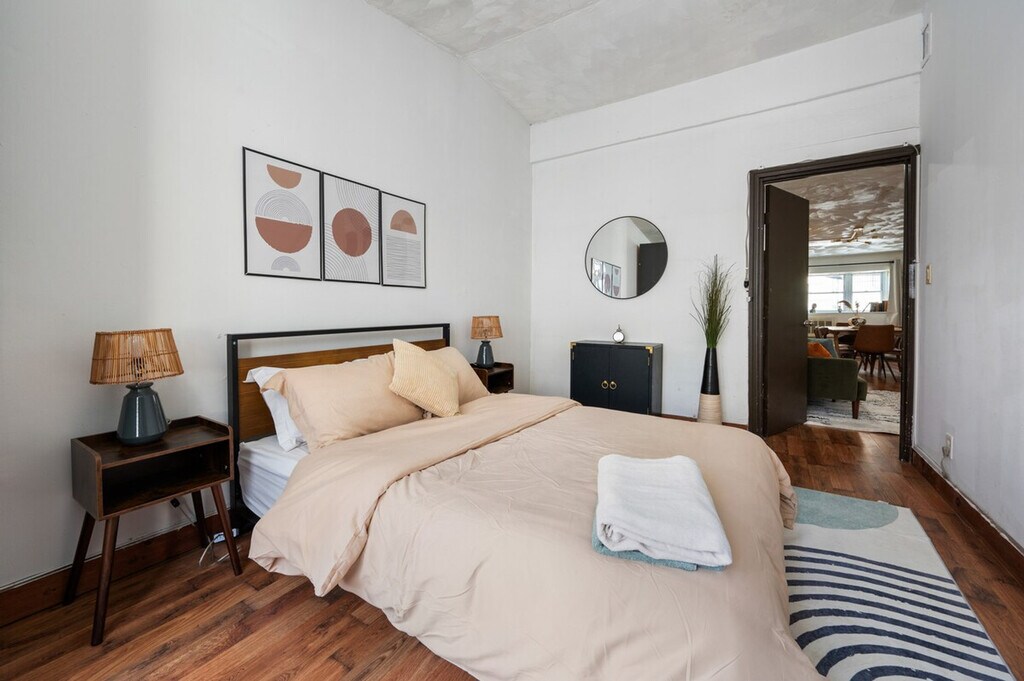 Feel at home in this cozy and inviting 3-bedroom apartment in the heart of Chelsea. This recently updated space sleeps 5 guests and features warm wood floors, comfortable furnishings, and a fully equipped kitchen. Amenities include Wi-Fi, AC, and a TV. Pets are allowed with a charge of $100 per pet. Enjoy easy access to top restaurants, attractions, and public transportation, making this the perfect home base for your NYC stay. [SI]