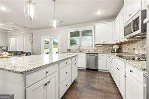 Built in 2021, this 5-bedroom, 3-bath home offers over 3,150 square feet of thoughtfully designed living space with elevated finishes throughout. The main level features a bedroom and full bathideal for guests, multi-generational living, or a private home officealongside a dramatic two-story foyer that sets the tone upon entry. The formal dining room showcases detailed wainscoting and coffered ceilings, while the family room continues the architectural interest with additional coffered ceilings and crown molding. The open-concept kitchen is designed for both everyday living and entertaining, complete with white cabinetry, granite countertops, stainless steel appliances, a double wall oven, and a seamless flow into the main living area. Upstairs, you'll find a spacious open flex room (separate from the secondary bedrooms) offering versatility for a media room, playroom, or additional workspace. The generous layout continues with well-sized secondary bedrooms and a private owner's suite. The fenced backyard provides functional outdoor space with privacyready for entertaining, pets, or quiet evenings at home. Modern, elegant, and move-in ready, this home combines architectural detail with practical design in a highly desirable Buford location. MLS ID 10714174