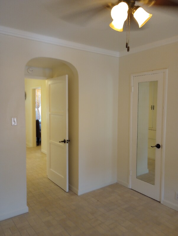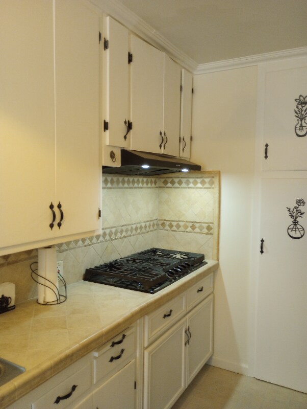 Property Id: 1782025 1 bedroom, 1 bathroom (shower), bedroom, living room, kitchen with white wood cabinets, brand new black cooktop, new refrigerator, black metallic rangehood, table with 4 chairs (optional), wall lights in living room, ceiling fan in each room, one regular size closet in bedroom, and an additional small closet , curtain rods installed, curtains in every room, the shower is completely remodel with high quality shower door, shower curtain and rod, close garage in alley area, large window in bedroom, recently painted, the whole apartment has a high quality texture travertine floor beige/tan floor, hanging light in kitchen with ceiling fan in dining area. This apartment is located in the second floor of a small building; it exists 3 apartments on top in 1 apartment downstairs, very solid building, many lights around building with sensors, solid concrete stairs,. The interested person must to have an excellent credit score, and it will be conducting a background check.
