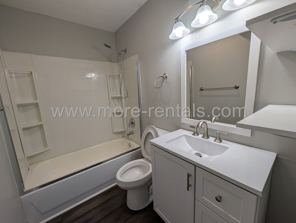 Be the first to live in this wonderfully remodeled house located on a quiet dead-end street...but with quick access to shops and restaurants.. The home features laminate and wood floors downstairs and brand new carpet in the bedrooms and upstairs, It has a all new kitchen and baths, fixtures, and fresh paint throughout. The home DOES NOT have a basement or a garage, but does include a very large shed ideal for storing landscaping equipment or outdoor toys including motorcycles.