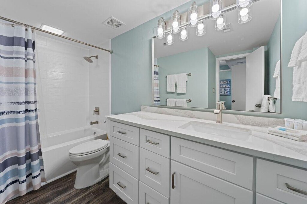 Escape to Shoalwater 406, a beautifully renovated 3-bedroom, 3-bathroom condo in the heart of Orange Beach. This stunning corner-unit retreat offers breathtaking Gulf views and a spacious, private balcony where you can soak in the sights and sounds of the ocean. Inside, the open-concept living area is designed for both comfort and style, featuring comfortable seating, a large flat-screen TV, and seamless balcony access—perfect for morning coffee with a view or sunset cocktails. As a corner unit, this condo offers enhanced privacy and ample space to relax while enjoying the stunning ocean view, complete with a rocking chair, lounger, and additional seating. The master suite boasts a gorgeous ocean view, and with three en-suite bathrooms, you will enjoy privacy and convenience. The condo comfortably sleeps up to eight guests. The fully equipped kitchen makes dining in a breeze, complete with modern appliances, cookware, and a dining table that seats six. As a guest, you’ll have access to top-tier resort amenities, including outdoor and indoor pools, a hot tub and sauna, a fitness center, and tennis courts. Parking includes a maximum of 2 passes per reservation and the parking fee is included in the total amount. Shoalwater 406 is just minutes from Orange Beach’s best restaurants, shopping, and attractions. Whether you’re in the mood for water sports, fresh seafood, or a relaxing stroll along the shore, everything is within easy reach. For your safety and protection, some properties have cameras installed outside. Surveillance cameras are not inside any of our properties. The minimum age requirement for check-in is 25 years old from March 1st to May 1st. For same-day late check-ins, you need to get the host's approval before booking. The home has a maximum occupancy of guests. Renters who exceed the occupancy limit are subject to eviction. No smoking in the unit or on the balcony. Any violation of the smoking policy will incur a $250 fine plus cleaning costs necessary to remove smoke odors. Quiet hours are observed from 10 pm to 8 am. Violators will be charged a $200 fine. The condominium association has a strict no pets policy. This applies to emotional support animals as they are not covered by ADA. Only ADA-compliant service dogs are allowed according to Federal Law. We are not responsible for any accidents, injuries, or stolen or damaged items that occur while on the premises, its facilities, or parking lots. Traveler must be at least 22 years of age or older to make a reservation. No parties or events are allowed. Violators will be charged a $500 fine.