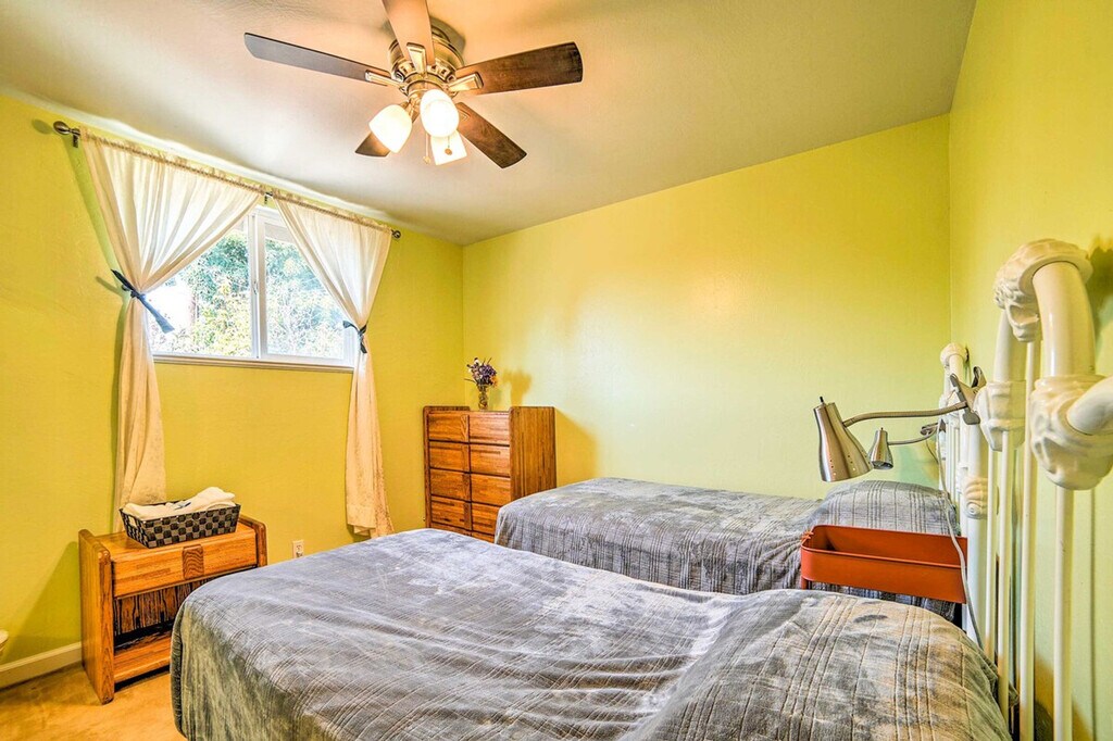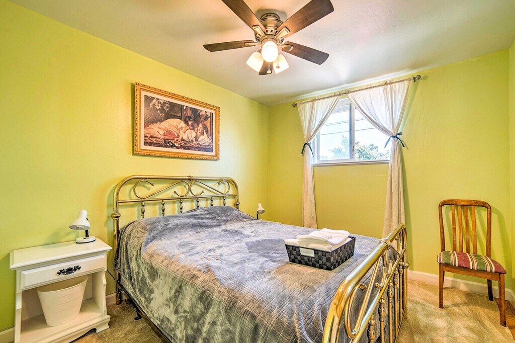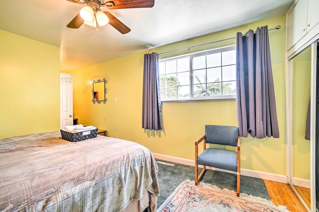 Welcome to your Santa Clara oasis! This pet-friendly vacation rental home features 3 bedrooms and 2 bathrooms, providing ample space to sleep 6, making it perfect for family trips or business travelers. The cozy living room is stocked with games and movies, ideal for a game night, while outside boasts a spacious deck, rock gardens, and plenty of seating to enjoy the sun. Close to shopping centers, museums, and other entertaining attractions, this recently remodeled property truly has something for everyone. After long days of meetings or shopping in Santa Clara, you’ll want nothing more than to return to your freshly remodeled abode. Grab a spot on the living room couch and stream your favorite show on the flat-screen Smart TV or pop a movie into the Blu-ray player. For those traveling with work, set up shop at the desk and connect to the free Wi-Fi to catch up on emails. Prepare dinner using the gas Weber grill or the fully equipped kitchen, stocked with all new utensils, and check out the cabinet stocked with cocktail glasses to create the perfect food and drink pairing. When it’s time to indulge, gather around the formal dining table or head outside to enjoy your meal on the spacious deck. Fully fenced and landscaped, the backyard is perfect for entertaining! Set up a board game at one of the lounge areas for a family game night outdoors. If it gets chilly, head inside to warm up by the wood-burning fireplace. Feel free to use the radio or CD player for some tunes! As your night comes to an end, retire to one of 3 bedrooms, where new linens ensure a good night’s sleep for all. [SI]