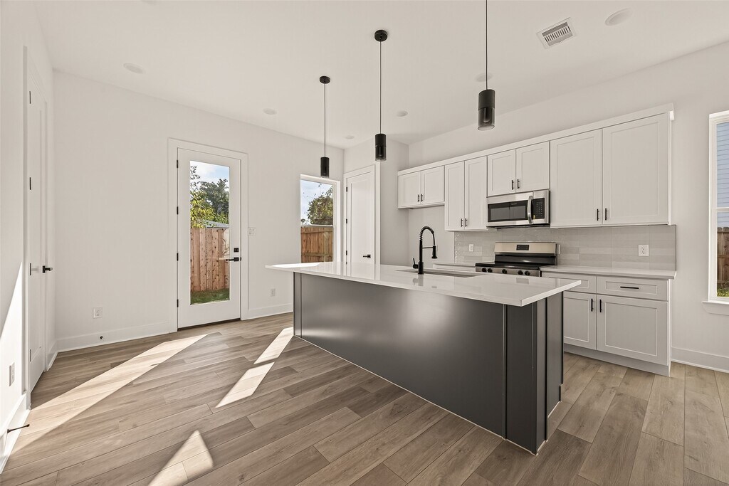 Be the first to experience modern living in a brand-new home designed for comfort and convenience! This 2-bedroom,2.5-bath gem features an open-concept layout,complete with vinyl plank flooring,quartz countertops,sleek white cabinetry,and a spacious kitchen island perfect for daily life or entertaining. Enjoy stainless steel appliances,a full washer/dryer,and private en-suite baths in each bedroom,providing comfort and functionality for roommates or guests. Additional highlights include a smart lock,mahogany-stained exterior,dedicated driveway,and a fully fenced private yard. Minutes from 610,290,The Heights,Downtown,shopping,dining,and major transit routes. A clean,well-designed space ready for immediate move-in. Don't miss this one! MLS# 16535086