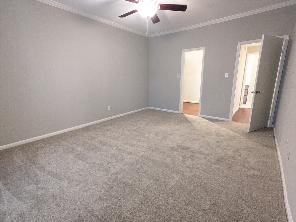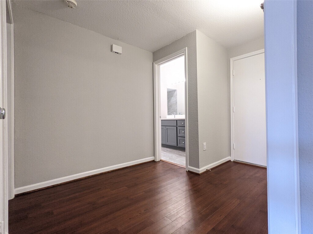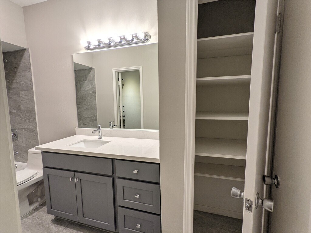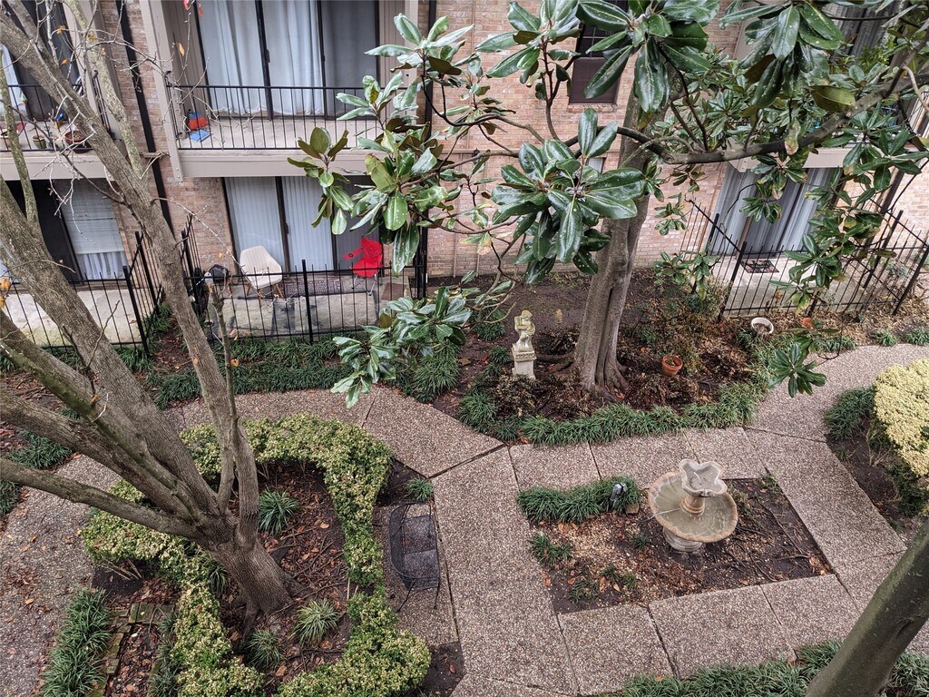 Updated LARGER of 1/1 condo located on the top floor of well-maintained community. Spacious B unit features updated kitchen & bath along w/ large foyer entry,generously sized bedroom,huge dress-in closet,& FULL-SIZE Washer & Dryer in WALK-IN utility room off of kitchen. Neutral paint through-out & carpet in bdrm. Kitchen has tile floors,cabinets w/undermount lighting,fixtures,quartz counters,large undermounted sink,faucet,SS fridge & dishwasher. Bath boasts updated fixtures,tub & tile surround,single-piece toilet,sink,faucets,lighting,tile flooring,cabinet & quartz counter. Recessed lighting to keep living area light & bright along w/ the natural lighting from large glass sliding door that leads to walk-out patio overlooking peaceful,landscaped courtyard. Fully gated w/ controlled access to covered parking & onsite office for packages. Conveniently located near Med Center,Rice U,Rice Village,jogging trails,& Metro bus lines. MLS# 33651717