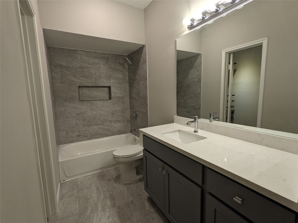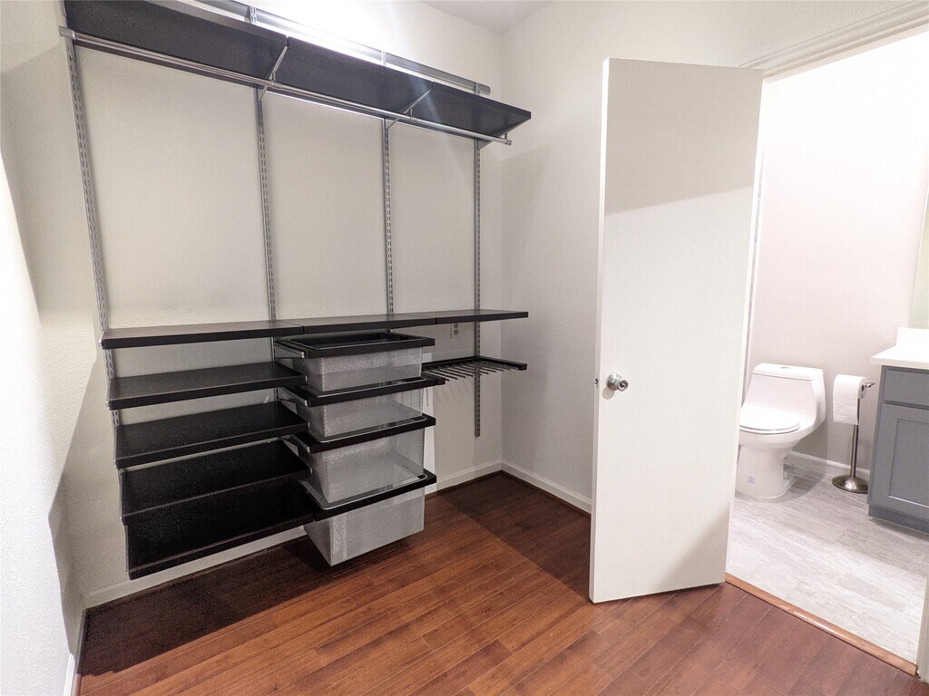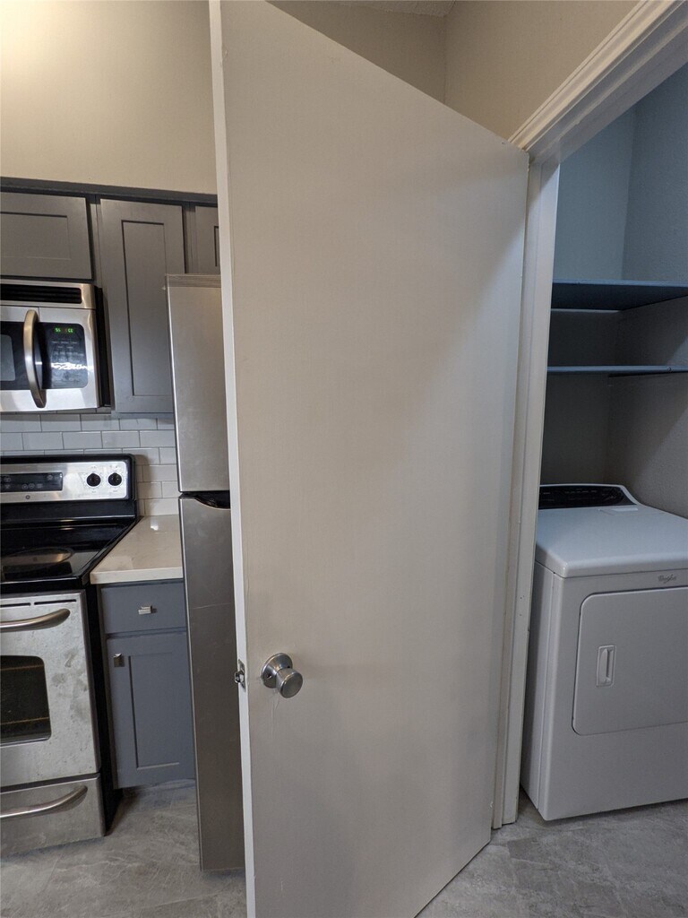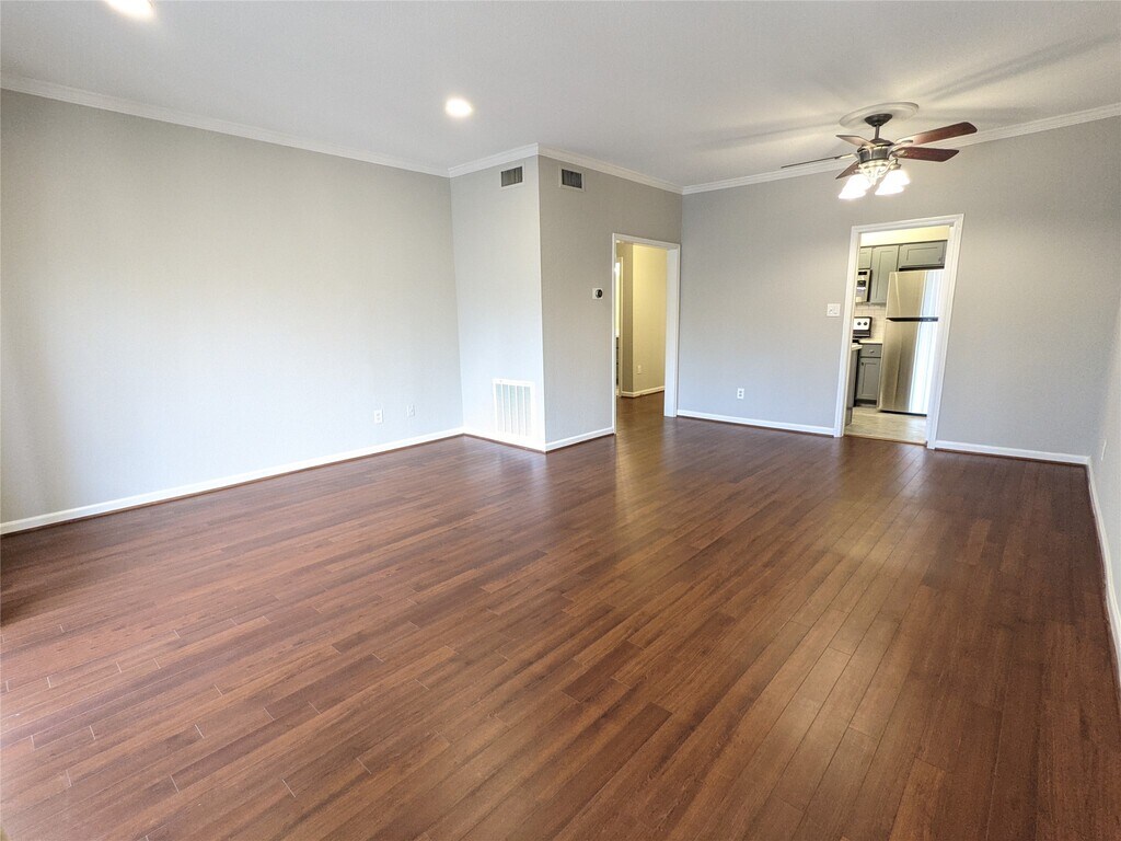Updated LARGER of 1/1 condo located on the top floor of well-maintained community. Spacious B unit features updated kitchen & bath along w/ large foyer entry,generously sized bedroom,huge dress-in closet,& FULL-SIZE Washer & Dryer in WALK-IN utility room off of kitchen. Neutral paint through-out & carpet in bdrm. Kitchen has tile floors,cabinets w/undermount lighting,fixtures,quartz counters,large undermounted sink,faucet,SS fridge & dishwasher. Bath boasts updated fixtures,tub & tile surround,single-piece toilet,sink,faucets,lighting,tile flooring,cabinet & quartz counter. Recessed lighting to keep living area light & bright along w/ the natural lighting from large glass sliding door that leads to walk-out patio overlooking peaceful,landscaped courtyard. Fully gated w/ controlled access to covered parking & onsite office for packages. Conveniently located near Med Center,Rice U,Rice Village,jogging trails,& Metro bus lines. MLS# 33651717