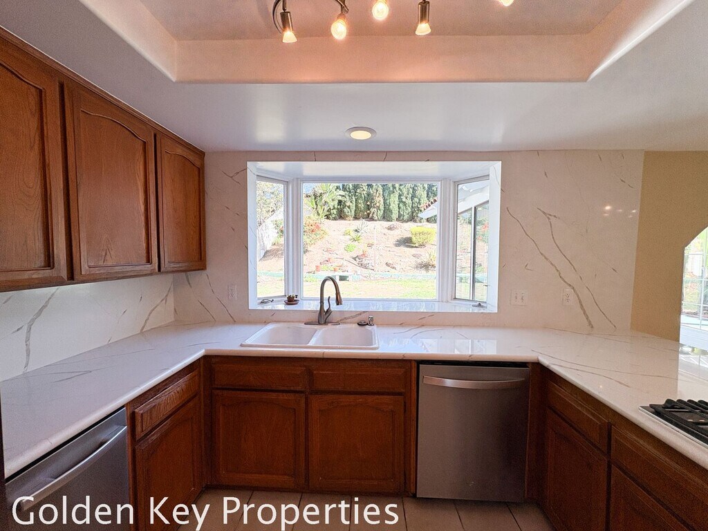 Welcome to this stunning 4-bedroom, 3-bathroom home located in the desirable La Costa neighborhood of Carlsbad! This home boasts a plethora of amenities that cater to a comfortable and luxurious lifestyle. The primary bathroom has been tastefully remodeled, and the updated kitchen is equipped with modern stainless-steel appliances. The home features a separate family room with a fireplace, perfect for cozy evenings, and a formal living room, seamlessly connected to the dining room, making it ideal for hosting. The rooms are light-filled, creating a warm and inviting atmosphere. The property also includes a spacious bonus room and balcony with ocean and sunset views, a large backyard with a half basketball court perfect for outdoor enjoyment, and a spacious storage shed. The home also offers an inside laundry room, a spacious 3-car garage, and landscape maintenance is included. Experience the perfect blend of comfort and luxury in this beautiful Carlsbad home.
