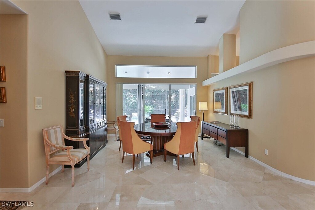 Dog Friendly....Welcome to paradise! Exquisite custom home with spacious floor plan and oversized screened lanai with heated pool overlooking a lush landscape with tranquil setting. Light and bright with soaring ceilings,this 3 bedroom plus den,3 full bath residence features a very large and open updated kitchen with granite counters,stainless steel appliances,upgraded cabinetry,center island,and is fully equipped. Lovely dining room and living room with sliding glass doors that open to the lanai. The Family room offers comfortable seating with a flat screen TV,fireplace and is open to the kitchen and also has sliding glass doors that opens to the lanai area. The primary suite has a king size bed,flat screen TV,sliding doors that opens to the screened lanai/pool area,and private bathroom with a separate tub and shower and dual sinks. Off the primary is the den/home office and a full guest pool bathroom. On the other side of the home a Jack & Jill bathroom connects the two guest bedrooms,one with a queen bed and the other with twin beds that has been converted to a king but can be used as twin beds as well. Plenty of space for everyone and the perfect home for entertaining! Owner will consider large dogs as they are dog lovers! Pelican Landing is a 2,365-acre gated community dedicated to preserving,protecting and enhancing the natural environment. Community amenities include a boat shuttle that provides transportation to and from a 34-acre gulf island Beach Park located at the northern tip of Big Hickory Island. Beach Park facilities include an elevated beach house with open decks,restrooms,shower facilities,nature library,beach bocce courts,open and screened picnic pavilions,beach chairs and umbrellas. The Community Center offers endless social activities and features a state-of-the-art 3,200 sq. ft. fitness center and 1,200 sq. ft. aerobics room. The Tennis Center has 12 har-tru courts (7 lighted) and a pro shop. Residents can enjoy private or group lessons or participate in one of the many scheduled events. Canoes and kayaks are available for residents use on Spring Creek,a tributary of Estero Bay,and Coconut Point Marina,which gives access to Estero Bay,Mound Key and the beaches. NOTE: Only 1 parking space available to tenant in garage.