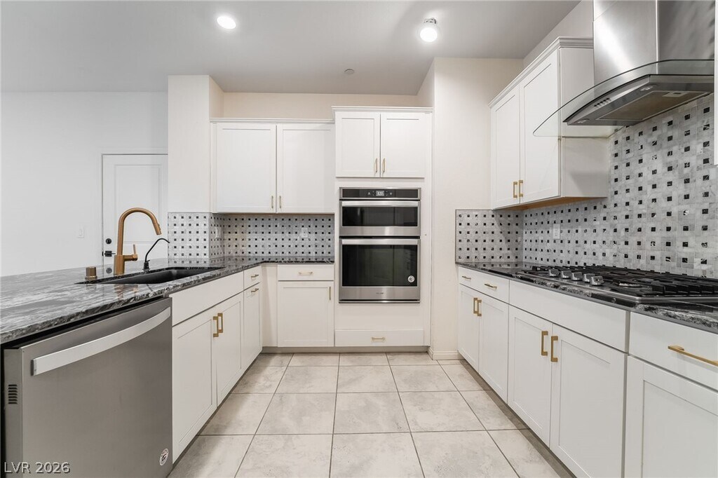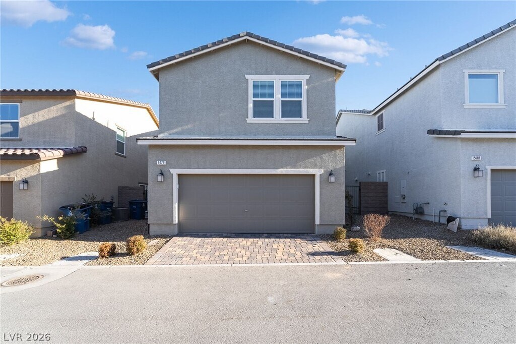 Discover this stunning home in the desirable Inspirada community! Featuring an open floor plan with recessed lighting and sleek tile flooring throughout, this residence exudes modern charm. The fully updated kitchen boasts a contemporary backsplash, stainless steel appliances, custom cabinets, a breakfast bar with seating space, and a pantry. The living room highlights an accent entertainment wall, while the main level offers a bedroom conveniently located near a full bathroom. Upstairs, enjoy the versatility of a spacious loft, along with a luxurious master suite featuring dual sinks, a walk-in shower, and a large walk-in closet. The additional bedrooms provide plenty of space, all complemented by ceiling fans for added comfort. Step outside to a finished backyard with pavers, perfect for relaxing or entertaining. MLS ID 2776780
