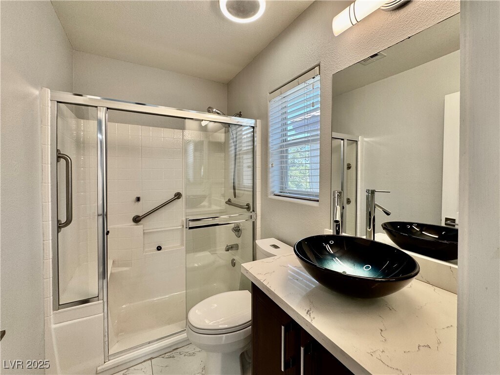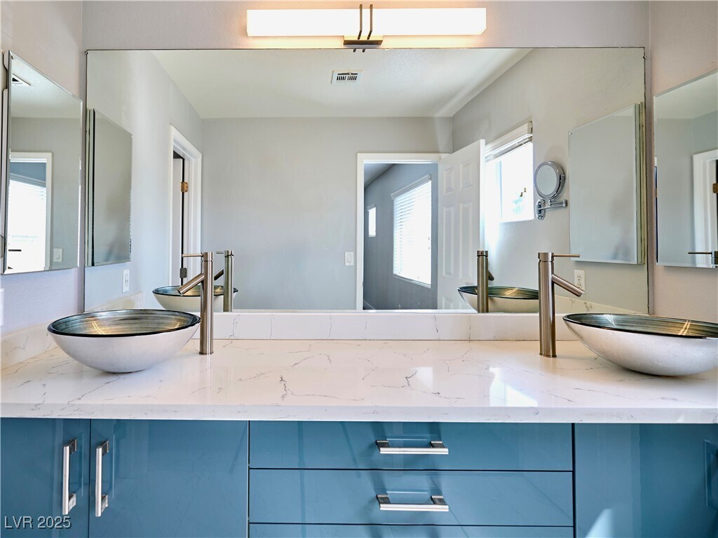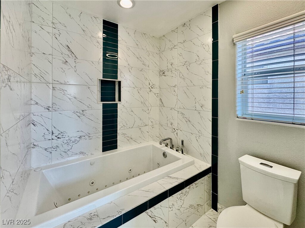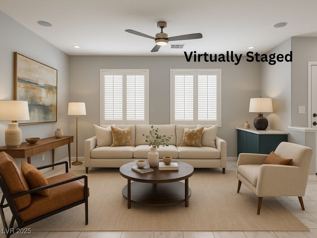 Modern style meets smart living in this 3-bedroom Las Vegas gem just steps from the crystal blue community pool. Inside, enjoy Bluetooth speakers, LED lighting, Dolby ceiling sound, Nest thermostats, and a MyQ smart garage. The kitchen and baths are fully remodeled with glass bowl sinks, a 36-jet Jacuzzi tub, and a custom sit-down shower. Tesla solar panels (paid off!) almost fully offset energy use, and a 250V EV charger is ready for your vehicle. Bamboo floors upstairs, tile down, Samsung washer/dryer, epoxy garage floors, and a lush yard with fruit trees and irrigation complete the package. This home is filled with upgrades you must see in person!