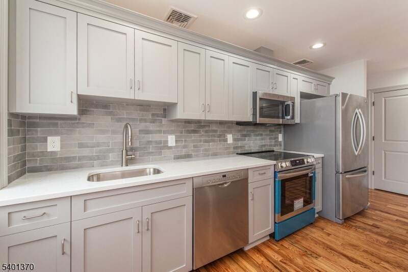 Stunning Brand New 2 Bedroom Apartment Completely Renovated From Top to Bottom! Be the very first to enjoy this beautifully redesigned 2 bedroom, 1 bath second-floor unit offering modern style, high-quality finishes, and exceptional convenience. This bright and open apartment features brand new hardwood flooring, LED recessed lighting, and generous closet space throughout, creating a clean, contemporary feel in every room. The showstopper is the gorgeous brand new kitchen, thoughtfully designed with soft-close cabinetry, luxurious quartz countertops, and high-end stainless steel appliances, including a high end range, dishwasher, microwave, and refrigerator. Perfect for anyone who appreciates a fresh, modern cooking space. Additional highlights include in-unit laundry, providing maximum convenience, and two dedicated parking spots a rare perk for renters. Every detail has been updated to offer comfort, efficiency, and easy living.Located close to public transportation, shopping, and dining, this unit is ideal for commuters and anyone seeking a stylish, move-in-ready home. Absolutely no pets. A pristine, brand new rental opportunity don't miss it! Public utilities and central air."