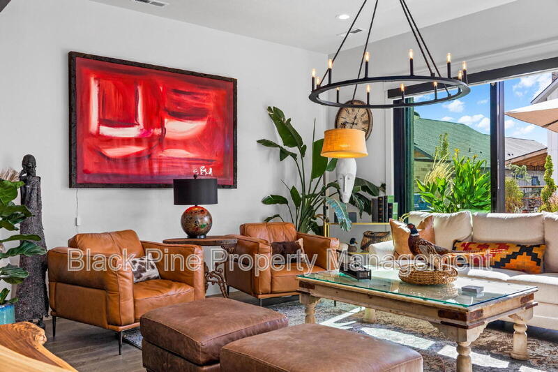 Located in the beautiful Stillwater community, this home stands out with its distinctive architecture and modern industrial design. The exterior combines clean lines with light brick and vertical paneling, creating a timeless yet contemporary look. (HOME IS NOT FURNISHED) Inside, the attention to detail continues. The main level is designed with 10 foot ceilings, hardwood floors, large beams, and a beautiful brick fireplace that adds warmth and texture to the space. A full wall of windows and doors opens completely to the patio, allowing natural light to fill the home and creating a seamless connection between indoors and out. The home is bright and light-filled throughout, including every bedroom. Just off the kitchen is a powder room featuring a brick accent wall. There’s also a mudroom area when entering from the garage, offering practical storage and organization. The kitchen is a showpiece, designed with a large quartz island, custom cabinetry, and stainless steel appliances. The layout provides exceptional counter space and storage, and the finishes throughout are cohesive and high-end, from the lighting to the hardware. Upstairs, the primary suite includes a dual-sink vanity, a soaking tub, and a large walk-in shower surrounded by tasteful tile work. Each additional bedroom is generously sized with neutral tones and ample closet space. The bathrooms are designed with coordinating modern fixtures and finishes. The whole home has custom Hunter Douglas blinds throughout including electric shades in the living room and the primary bedroom. A standout feature is the second-story patio with its own outdoor fireplace and partial brick surround, offering additional living space and elevated views of the community. The oversized two-car garage includes a custom Saferack storage system, providing ample space for organization. The Stillwater subdivision includes a multitude of amenities such as access to a community pool, hot tub, an outdoor kitchen, ping pong tables, shuffleboard, corn hole, a half basketball court, bass stocked pond for fishing enthusiast, individual garden boxes, direct path to Boise River Greenbelt. 12 month lease. Tenant is responsible for all utilities. Tenant must sign CCR's and follow HOA rules and regulations. Lawn care is included in HOA. Dogs considered with additional pet rent. Please complete a pet profile, with Our Pet Policy, using this link (please copy and paste in your browser) . If pet is accepted, tenant will be required to pay a $100 non-refundable pet fee and $50 monthly pet rent. All applications are accepted through RentVine. You can apply through on our available rentals page. All Black Pine Property Management residents are enrolled in the Resident Benefits Package (RBP) for $37/month which includes liability insurance, credit building to help boost the resident's credit score with timely rent payments, up to $1M Identity Theft Protection, HVAC air filter delivery (for applicable properties), our best-in-class resident rewards program, and much more! More details upon application. Pet Details: Dogs will be considered with additional pet rent. No cats. Please complete a pet profile, with Our Pet Policy, using this link (please copy and paste in your browser) . If pet is accepted, tenant will be required to pay a $100 non-refundable pet fee and $50 monthly pet rent. Please note that service and support animals are exempt from these specific requirements and associated fees. All applications are accepted through RentVine. You can apply through on our available rentals page.