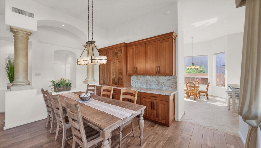 Experience tranquility at this Desert Estate getaway in Troon Village, featuring breathtaking views. This fully furnished home offers three spacious bedrooms and 2.5 baths, providing a serene escape. Enjoy patio access from multiple areas of the home, perfect for relaxing by the refreshing pool. Located just minutes from top-rated golf courses, five-star restaurants, and numerous hiking trails, this home ensures you have everything you need for a restful stay. The property includes a three-car garage and a laundry room with a full-size washer and dryer. The pool is available for relaxation, though it cannot be heated during the winter months. Pets are not allowed. Guests are liable for any damages caused to the property.