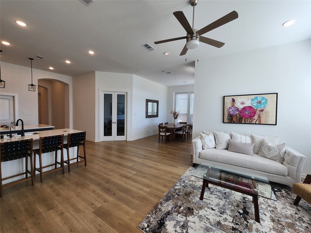 Beautiful 2024 Highland Home available for lease in the master-planned community of Elyson in Katy. This one-story home features 4 bedrooms and 4 full bathrooms. The open-concept living space features high ceilings and abundant natural light. For comfort and privacy,the home includes 3 private en-suite bathrooms,spacious living and dining areas,and a versatile flex room. The modern kitchen opens to the main living area,making it perfect for entertaining. Enjoy a covered patio that overlooks the greenbelt,providing added privacy and a peaceful outdoor setting. The home is zoned for the Katy Independent School District and is conveniently located near pools,parks,and walking trails. Home boasts a water softener system. MLS# 65465614