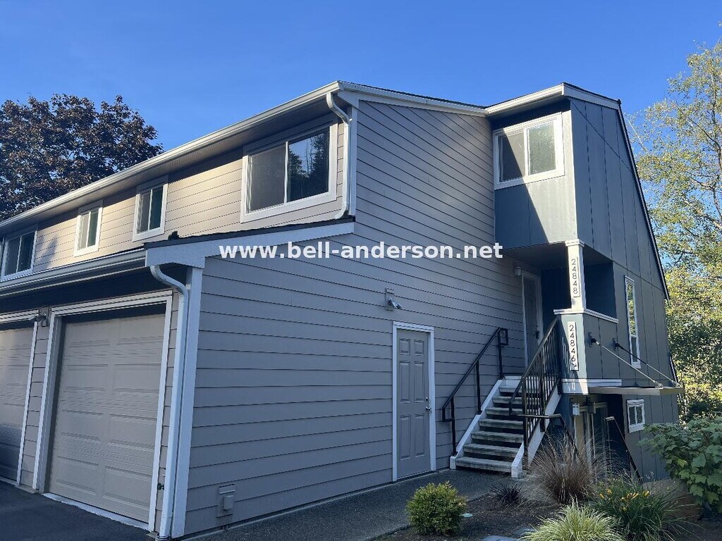 You must see this tri-level condo in Kent! Located near the Riverbend Golf Course, near shopping and easy freeway access. This condo has cathedral ceilings for the living room and dining room. In the large balcony you will be able to enjoy the morning sun or evening dinner outside. There is also a storage closet on the balcony. The living room has a wood burning fireplace to have a warm cozy night in. The kitchen has stainless steel appliances, stove, fridge and dishwasher. As you head to the second floor you will see the guest bedroom and full bathroom. Utility room is equipped with large washer and dryer and big enough for extra storage. The top floor boasts your primary bedroom with walk-in closet, mirror closet doors and bathroom has a soaking tub. The basement level is the one car garage. Water and sewer are included in the rent. Tenant responsible for all other utilities. No pets and no smoking. $1,200.00 Fully refundable security deposit. $50.00 application fee per adult. For more information or if you'd like to schedule a showing, contact Maria Garcia, Property Manager at , ext 221 or email at mgarcia@bell-