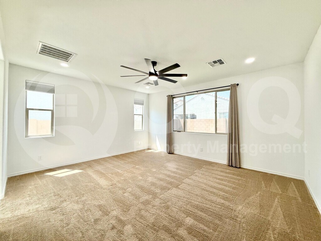 3,462 SQ FT! Stunning 5 bedroom, 3.5 bathroom two-story home in Surprise’s desirable Rancho Mercado Parcel A12 neighborhood. The elegant kitchen features all appliances in their proper locations: Refrigerator, Oven, Microwave, Dishwasher, and Garbage Disposal, with a second Refrigerator conveniently located in the pantry, combining style and functionality for everyday living and entertaining. Spacious living areas with carpet and tile flooring in all the right places create an inviting atmosphere for both relaxing and hosting guests. A flexible bonus space upstairs, complete with a walk-in closet, provides the perfect option for a home office or den. The primary suite includes a generous walk-in closet and a well-appointed ensuite bath, while three additional bedrooms are nicely sized to accommodate family or guests. The laundry room comes equipped with a Washer and Dryer for convenience. Additional upgrades include an Aquasure water system, Aquasana water filtration, a tankless water heater, and dual AC units. Parking is provided by a 2-car garage and a 1-car garage, both with new epoxy flooring. Step outside to enjoy the private backyard with a covered patio, ideal for outdoor living. Located in Rancho Mercado Parcel A12, this home offers easy access to schools, parks, dining, and entertainment in the heart of Surprise. Pet Policy: Dogs and Cats Allowed APPLICATION: $65 Application Fee Per Applicant 18 years or older (Nonrefundable). Please allow 24 to 72 business hours to process the Application once all required documents are submitted by all applicants. Submit your application: LEASE LENGTH: 12-month Minimum (Longer Lease Term may be negotiable) INITIAL MOVE-IN COSTS: Upon application approval, a nonrefundable Holding Retainer will be required to secure the property and will be applied towards the move-in costs. The Holding Retainer amount is determined by the type of Security Deposit option you choose. Applicants can choose between a traditional Security Deposit which may be 1.25 times the monthly rent but not greater than 1.5 times the monthly rent (75% refundable) or a Security Deposit Alternative program (only available on long-term leases of 12 months or more). To learn more about the Security Deposit Alternative benefits, visit . A $250 one-time lease preparation fee as well as the first month's rent is due prior to move-in. If the Applicant has a Pet, $150 Non-Refundable Pet Fee per pet. RECURRING MONTHLY COSTS: There is a 3.3% Administration Fee. If the Applicant has a Pet, a $35 Pet Rent Per Pet (Does Not Apply to Assistive Animals). All On Q Property Management Residents are enrolled in the Resident Benefits Package for $39 or $49 with pets, which includes liability insurance, credit building to help boost the resident's credit score with timely rent payments, move-in concierge service making utility connection and home service setup a breeze during your move-in, Renter to Buyer program, and much more! *Other terms and conditions may apply. The list price is the base rent and recurring monthly costs may apply. All information including advertised rent and other charges are deemed reliable but not guaranteed and is subject to change. By submitting your information on this page you consent to being contacted by the Property Manager and RentEngine via SMS, phone, or email.
