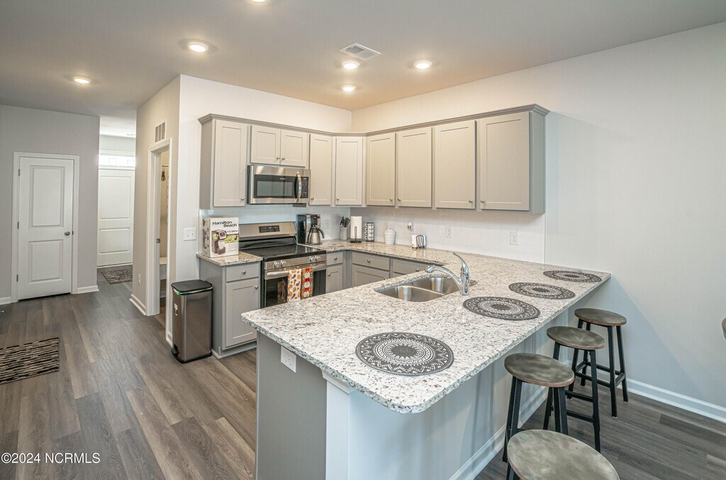 This new townhome was just completed spring 2025 and is totally FURNISHED with new furniture, new dishes, new linens, etc. All you need to do is bring your clothes and toothbrush for this awesome rental opportunity. Length of time for the lease is negotiable, however with a 12+ month lease, the 12 month will be FREE! You are located 5 minutes from Sunset Beach and less than 2 minutes from multiple stores and restaurants. Lawn maintenance is handled via the HOA so it will be maintenance free living for you! Tenant will pay utilities. In addition to the 1 car garage, there is ample parking in the driveway. Inside the townhome, you will find luxury finishes including granite countertops and stainless appliances. The primary bedroom is located on the main level. Upstairs there are two guest bedrooms that share a full bath. The full size laundry room and half bath are located on the first floor. The back porch is covered and there is a nice backyard. The yard is very private but not fully fenced in. Potential tenants will pay for a background check and credit check. No pets allowed.