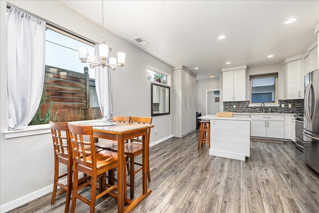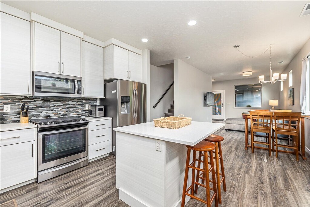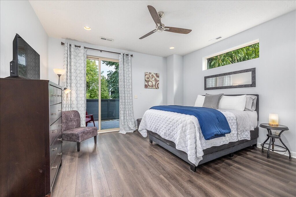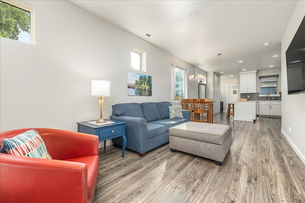 Located in the vibrant Arts District of Garden City, and only steps away from the Boise River, Greenbelt and Whitewater Park, this furnished townhouse offers convenience and comfort on two levels. Enjoy the open concept main floor with living room, well-equipped gourmet kitchen, dining area, powder room and private patio space. All 3 bedrooms are located upstairs along with the laundry room w/washer and dryer, 2nd bathroom with dual-vanity and the well-positioned primary suite with private balcony and walk-in closet. The townhome is entirely private, but is adjacent to a small Casita out front, and a part of a pocket-neighborhood of 4 homes. There are no shared common spaces and no shared driveway access. Parking is on the street only, which is free. Just minutes to downtown Boise, the interstate and both area hospitals. Work and play are easy here. Date Available: OCT 1, 2025. Rent: $3000/mo. (ALL utilities and internet included!) Security Deposit: $1500. No Pets. No Smoking. Please submit the form on this page or contact us to learn more. This property is managed by a responsible landlord using Avail landlord software.