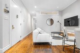 Feel at home in this updated 3-bedroom, 1-bath residence. This apartment offers a seamless blend of style and function. The modern kitchen is equipped with stainless steel appliances, including a dishwasher, microwave, and wine cooler. Additional highlights include hardwood floors, high ceilings, and contemporary bathroom finishes throughout. This apartment also offers an in-unit washer and dryer.