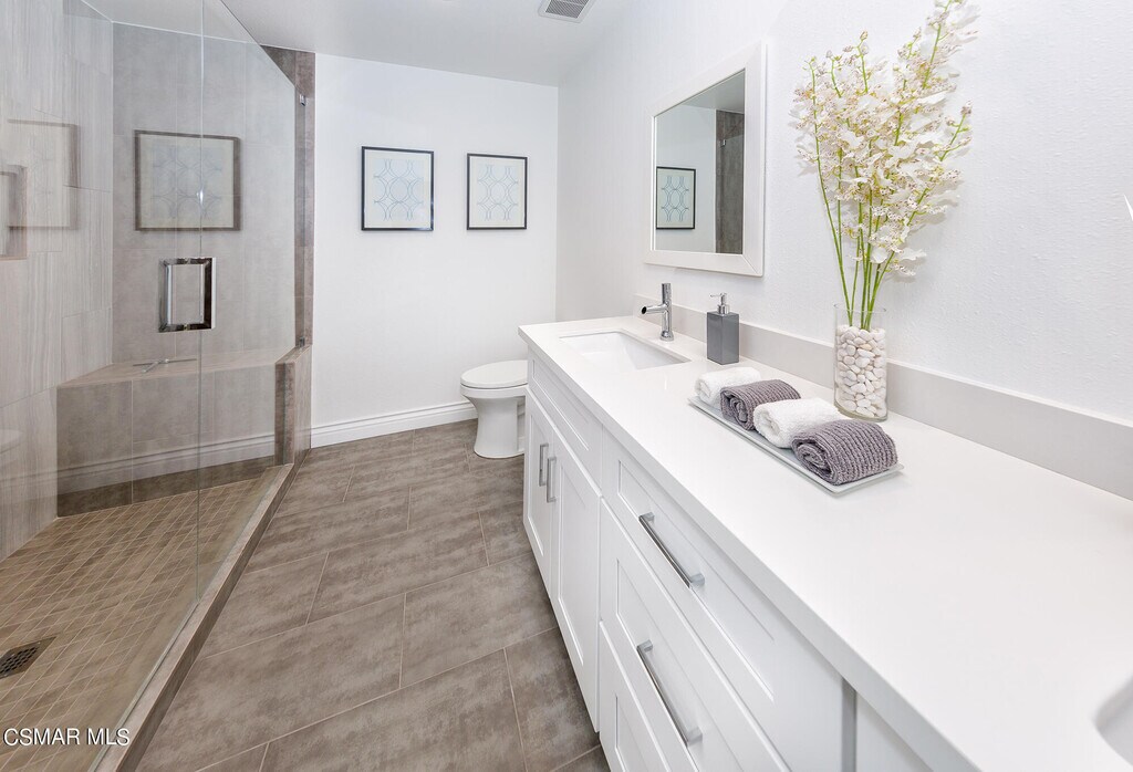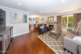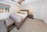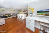 Exquisite pool home, fully furnished with modern designer treatments and beautifully appointed inside and out. Bi-folding doors open out to a spectacular fully fenced yard with pool. spa, covered and lighted patio with a built in BBQ. A perfect set-up for indoor/outdoor living. Enjoy the annual fireworks show and views from the top of the property. Inside is a designers dream with Quartz counters, wood floors, full wine bar with dual fridge, ledgestone fireplace and an in-place work station. A great center island kitchen opens to a cozy, theatre like family room complete w/surround sound and flat screen. The primary suite features a large walk-in, private balcony, gorgeous bath and an oversized sitting area. Two guest beds share a beautiful bath. The entry level bedroom is currently set up for office. Ideal neighborhood and location just a minute or two from mall shopping, most conveniences & a golf course. The housing provider is including the TV's, internet, pool service, gardener and trash. This is a unique opportunity allowing you to move in without really moving.