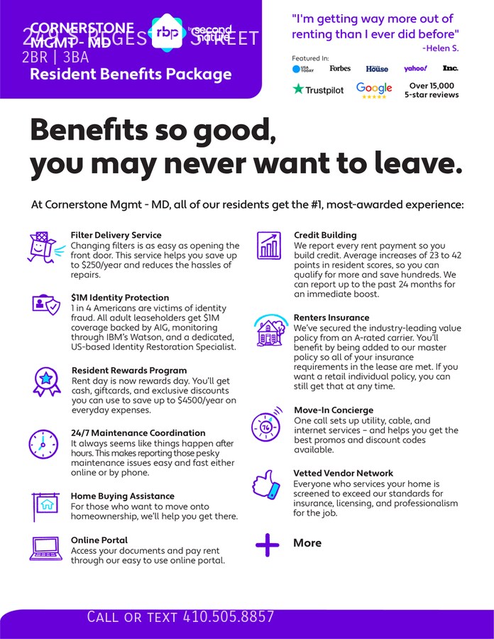 Don't miss out on your opportunity to live in this beautifully upgraded 2 level townhome in the heart of the highly sought after Upper Fells Point neighborhood!! Walk into the spacious open floor plan on the main level with new finishes throughout-including: recessed lighting, beautiful hardwood flooring and large windows that offer beautiful light throughout the home. The gourmet kitchen boasts tile countertops, Luxury appliances, tile backsplash, a sealed burner stove and breakfast bar. Make your way upstairs to the second level offering two spacious & bright bedrooms, two luxurious bathrooms and hallway laundry. The master suite in the rear includes a spacious bathroom and access to the private outdoor deck and fenced-in rear yard. Basement is unfinished, but would afford additional storage. *Recently Fully renovated- with remarkable details throughout.* Don't miss out on this one!-Schedule your showing today!-call us to confirm Pet Policy: Case-by-Case Parking: Street Utilities: Covered by Resident Combined Income Requirement: $5000 Credit Score: 680 or higher $75 Move-In Fee All Cornerstone Property Management residents are enrolled in the Resident Benefits Package (RBP) for $40.95/month which includes renters insurance, HVAC air filter delivery (for applicable properties), credit building to help boost your credit score with timely rent payments, $1M Identity Protection, move-in concierge service making utility connection and home service setup a breeze during your move-in, our best-in-class resident rewards program, and much more! See attached photo of flyer-More details upon application. Balcony Private Fenced In Yard Renovated Open Concept Kitchen