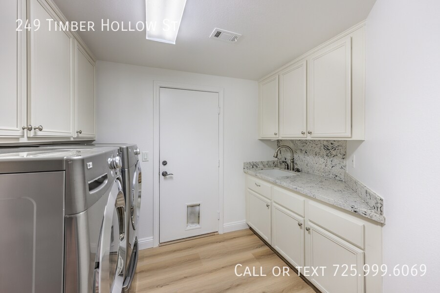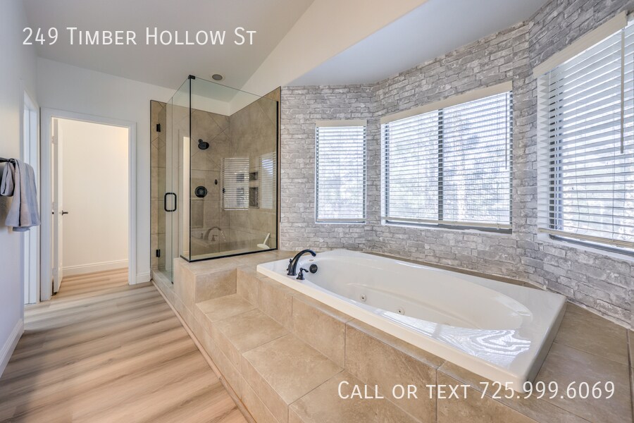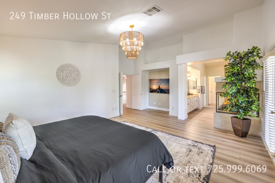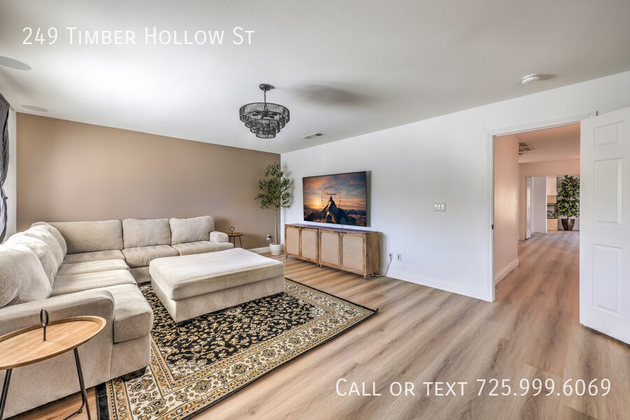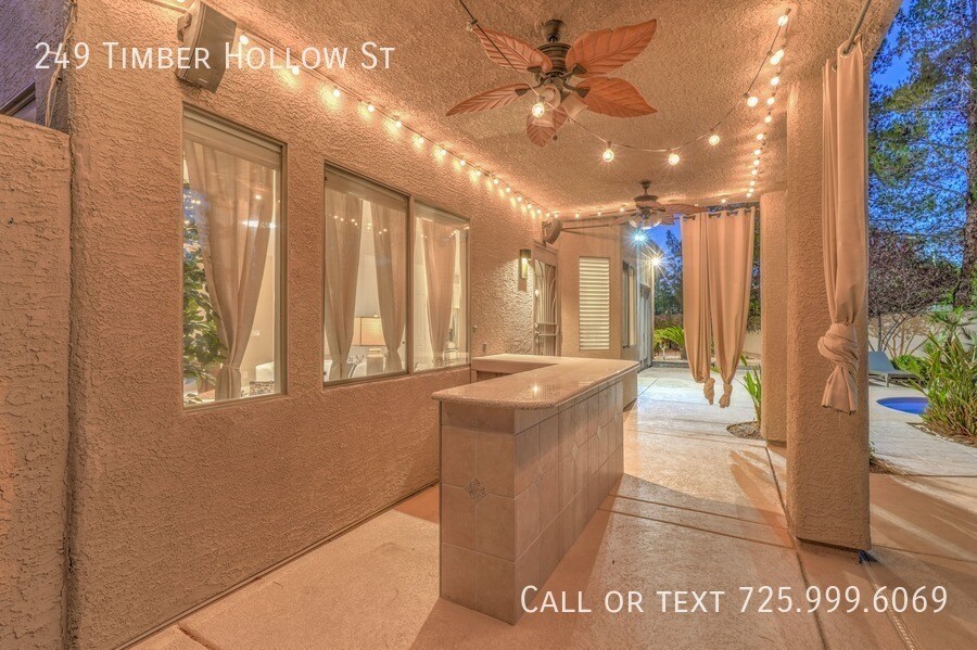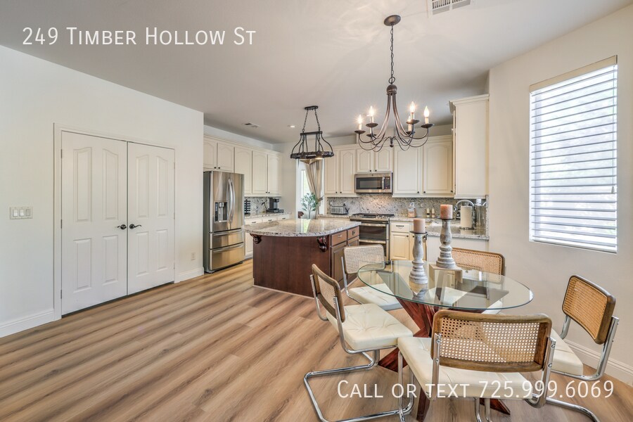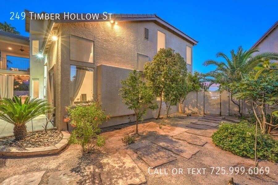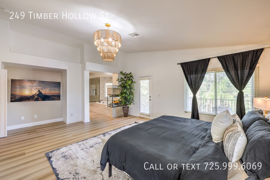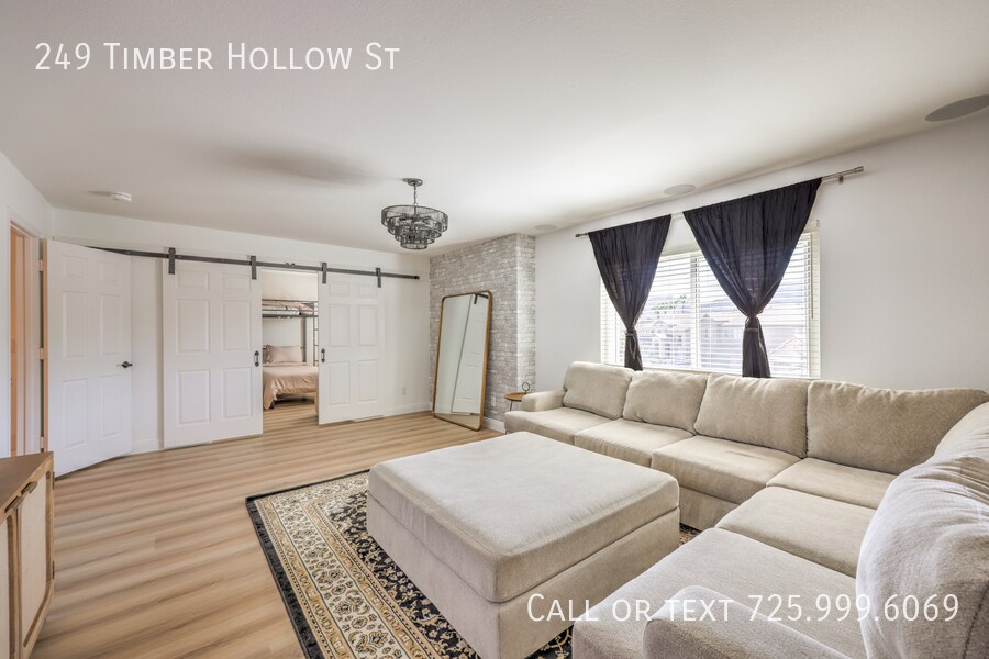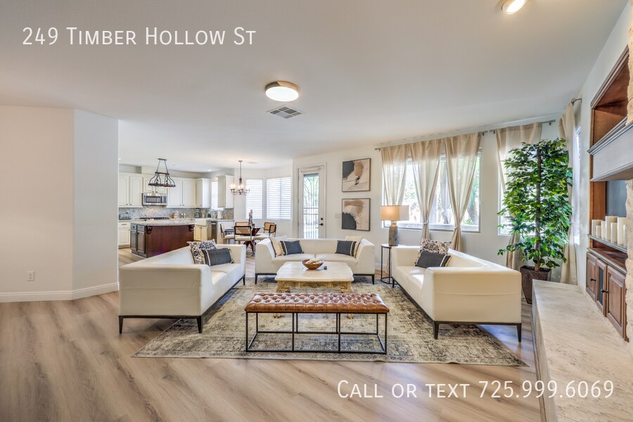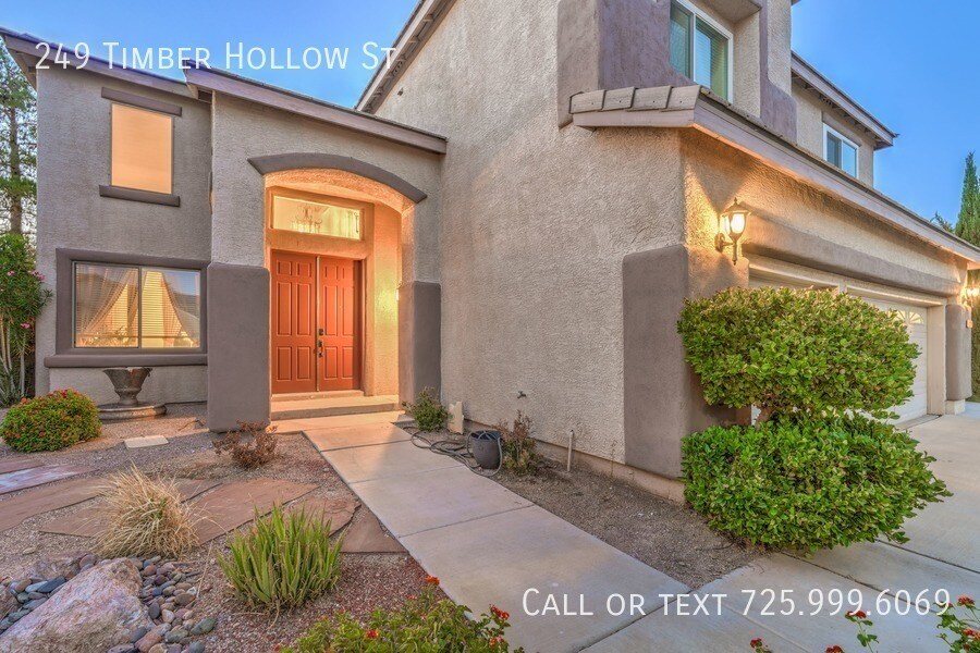 249 Timber Hollow Street ? *Furnished* Luxurious Pool & Spa in Green Valley Ranch! ? 4 Bedroom, 3 Bathroom ? Pool and Spa Live in of the most popular areas of the valley, close to the District, Lifetime Fitness, Whole Foods, DLC Arena, and many restaurants and amenities in Henderson's upscale west side. A private and oversized lot with no neighbors behind. Enjoy the lush backyard oasis with bar seating for entertaining, resort like pool with waterfall & jacuzzi! Inside, the gourmet island kitchen with farmhouse sink & stainless appliances offers plenty of space for gatherings. The primary bedroom retreat boasts a large covered balcony, roomy bath with walk in closet. The large flex space/loft has a 5th bedroom attached. Full bedroom and bathroom downstairs. 3-car garage! $-Rent includes trash along with Monthly Pool and Landscaping services-$ ** Apply here: **