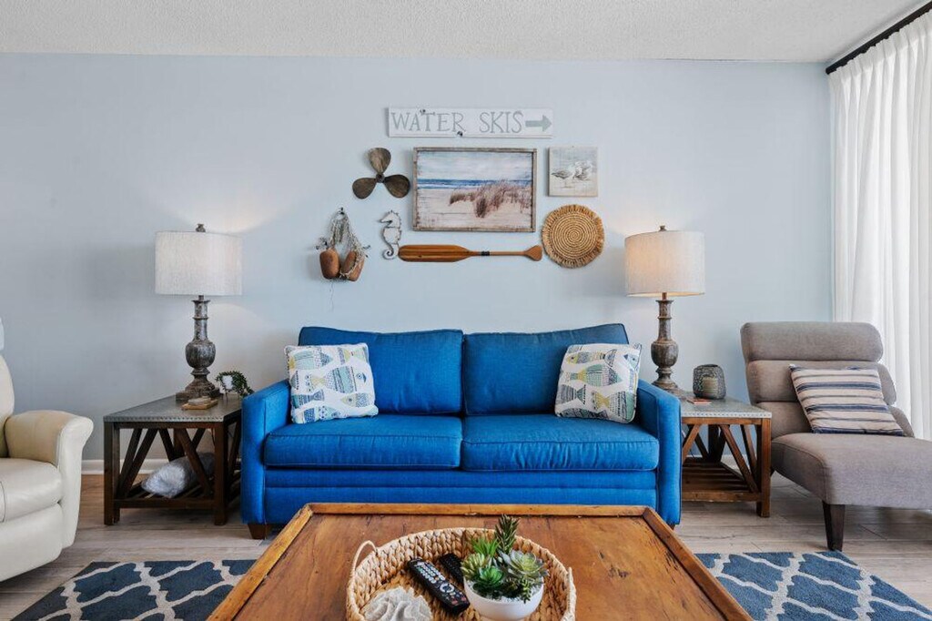 Feel at home in this inviting 3-bedroom condo in Orange Beach, offering a wonderful retreat for a relaxing vacation. The spacious living room is designed for comfort, featuring cozy seating, a large TV, and plenty of natural light. Adjacent is a fully equipped kitchen with modern appliances, perfect for preparing home-cooked meals, whether it's breakfast with the family or a quick snack after a day at the beach. One of the highlights of this condo is the private, furnished balcony, where you can unwind with a cup of coffee or enjoy sunset views after a fun-filled day. The building offers an array of fantastic amenities, including a BBQ area perfect for grilling up a family feast, a shared hot tub for some well-deserved relaxation, and both indoor and outdoor pools for swimming. For the little ones, there's a dedicated kid’s pool, ensuring fun for all ages. The parking fee is included in the total amount, with parking space for a maximum of 2 cars. Whether you're here to relax or create lasting family memories, this condo offers the perfect blend of comfort and convenience. Local attractions include Gulf State Park, Orange Beach Waterfront Park, Dinosaurs In The Woods, Bamahenge, Alabama Point East, Gulf State Park Nature Center, and Orange Beach History Museum. A State Identification Card or Driver's License copy will be requested upon booking. The traveler must be at least 21 years of age to make a reservation. There is a twin over a full bunk bed. From March 1st to May 1st, the minimum age requirement for check-in is 25 years old. No smoking is allowed in the unit or on the balcony, and any violation of the smoking policy will incur a $250 fine plus cleaning costs. Quiet hours are observed from 10 pm to 8 am, with violators charged a $200 fine. The condominium association has a strict no pets policy, which applies to emotional support animals, as they are not covered by ADA. Only ADA-compliant service dogs are allowed according to Federal Law. No parties or events are allowed, with violators charged a $500 fine. A laptop computer is not included. [SI]