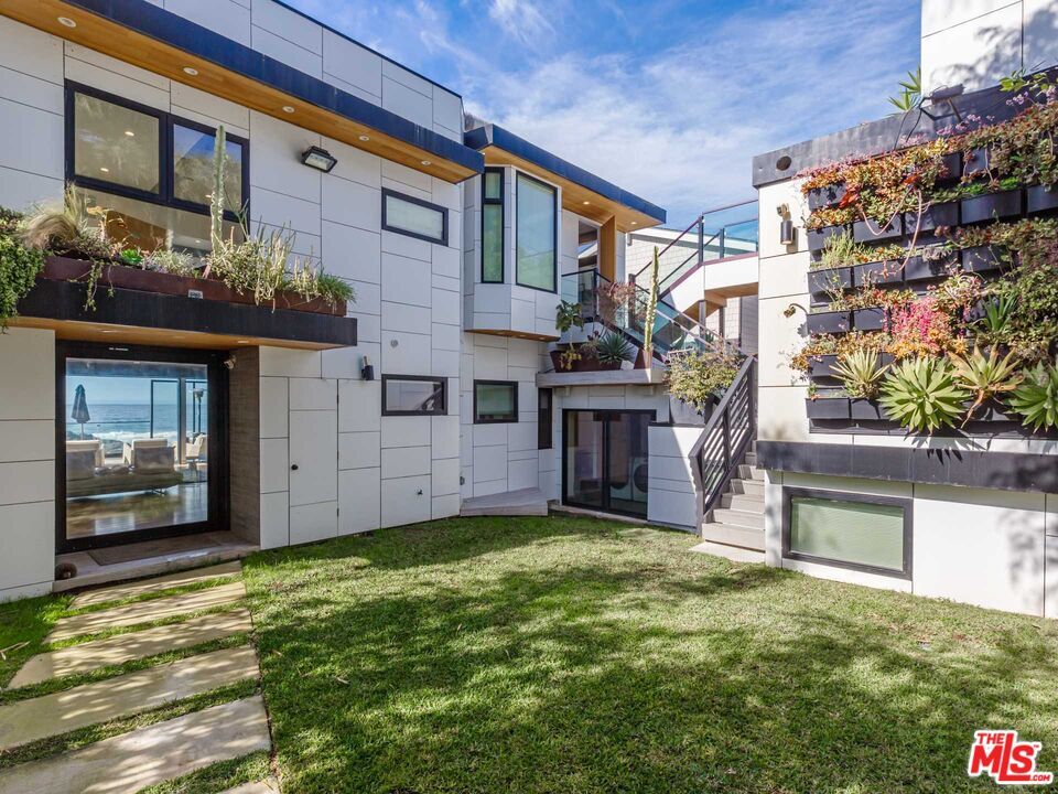 Exceptional retreat on Malibu Road, coveted for its prime beachfront location. Situated by the renowned 'waterfall rock', this home boasts a lushly landscaped courtyard entryway and expansive BBQ area. Step inside where towering walls of glass offer breathtaking ocean views. Enjoy a chef's kitchen, open-plan living with fireplace, and expansive deck leading to the best section of sand Malibu Road has to offer. Features include a state-of-the-art movie room, versatile fourth bedroom/bunkroom, and an upstairs primary suite with panoramic vistas. Completing this coastal haven is a separate studio guesthouse boasting a full kitchen, living area with fireplace, and a private entrance. Experience coastal luxury at its finest. Available for short term and summer months $80k/month. MLS# 25566685