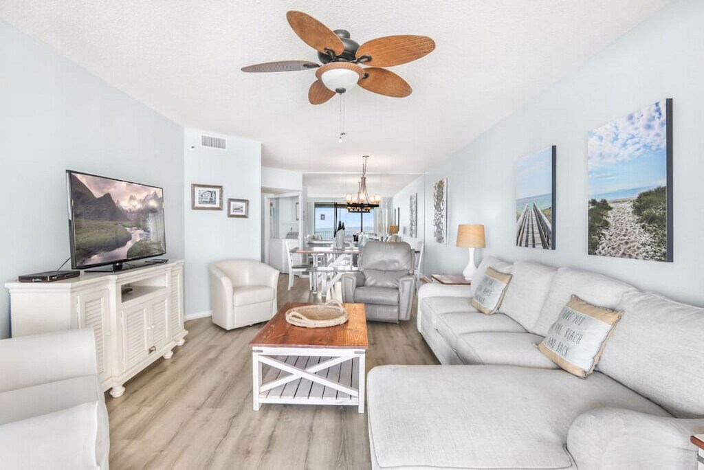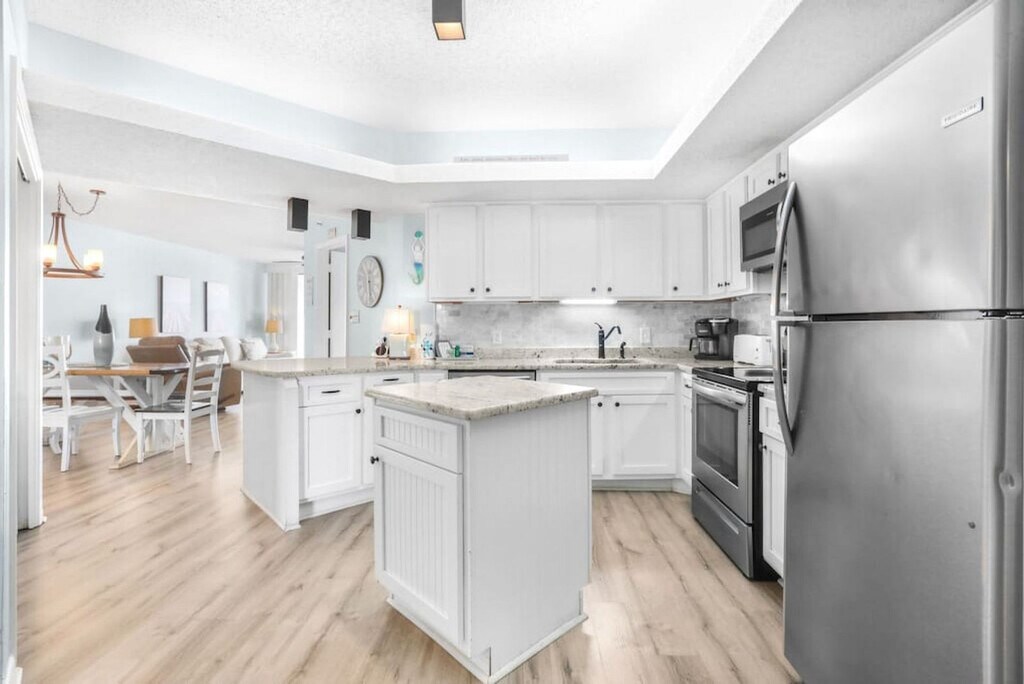 Experience breathtaking ocean views from this beautifully updated 3-bedroom, 2-bathroom apartment located directly on the beach, just a short walk to the sugar sands of Orange Beach. Enjoy the convenience of nearby stores and shopping, only a minute's drive away. This apartment features a large patio perfect for entertaining and a spacious split-bedroom layout with open kitchen and living areas, ideal for relaxing after a day at the beach. The apartment offers a large split-bedroom layout with open kitchen and living spaces, providing ample room for relaxation and entertainment. Large bedrooms and plenty of space make it easy to unwind after a long day on the beach. Paid parking is available with a Guest Registration Certificate costing $51.50, allowing for a maximum of two vehicles per stay. A third vehicle may be parked in a gravel lot free of charge with a gravel pass obtained from the guard shack or office during business hours. Located directly on the beach, this apartment provides stunning views from the patio and easy access to the sugar sands of Orange Beach. Nearby stores and shopping are just a minute's drive away, making it convenient for all your needs. Check-in is after 4:00 PM and checkout is at 10:00 AM, with self-check-in available via a combo-lock. Smoking is prohibited anywhere on the property or complex premises unless in designated areas. Pets are not allowed, and this is a pet-free complex. Guests are expected to respect neighbors and adhere to all posted rules and guidelines for amenities. Failure to comply may result in loss of the right to occupy the rental. The named reservation holder must be one of the occupants, and the booked guest count must be accurate. Communication should be directed to us only, not on-site staff. Damages to the property may incur charges, and failure to vacate on time may result in a $50 fee. [SI]
