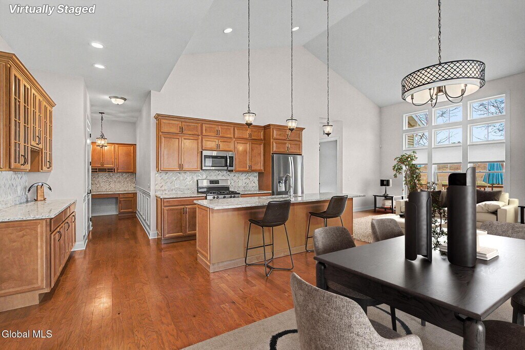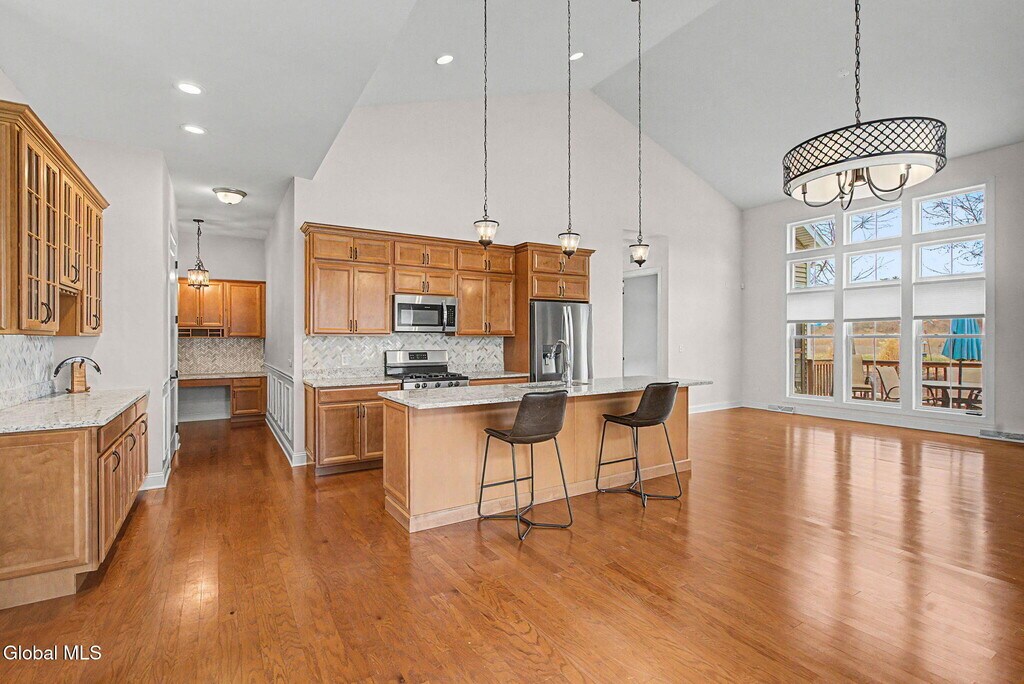 Welcome to this luxury two-story end-unit townhouse in desirable Orchard Pointe! Bathed in natural light,this home features an open floor plan with vaulted ceilings and a gas fireplace that anchors the inviting great room. The beautifully appointed kitchen offers granite countertops,SS appliances,large pantry and a convenient island with seating. Just off the main living space,step out onto your private deck and enjoy peaceful views of the landscaped yard. The first floor includes a spacious primary suite complete with an en-suite bath and walk-in closet. along with an office nook,mudroom,and laundry for added convenience. Upstairs,you'll find a second large bedroom with a full bath,plus a versatile loft space that can easily serve as a home office,sitting area,or even an additional bedroom. Plenty of storage with a partially finished basement and a two-car garage. Located in the Shenendehowa School District and available for immediate occupancy,this home offers both comfort and convenience in a sought-after location. Rent includes snow removal,lawn care and fall clean up. Pets to be considered. 12 Month Lease Minimum. First Month + One month deposit due at lease signing. Online Application Link: MLS ID 202615198