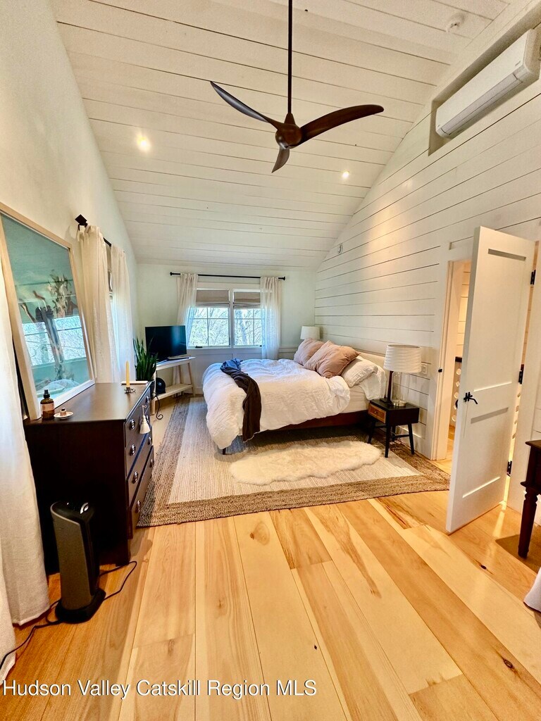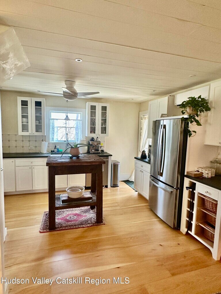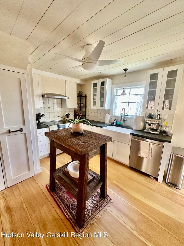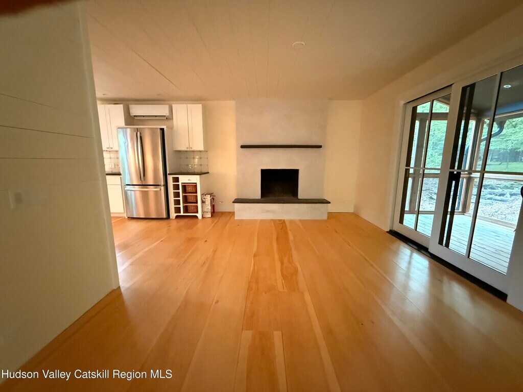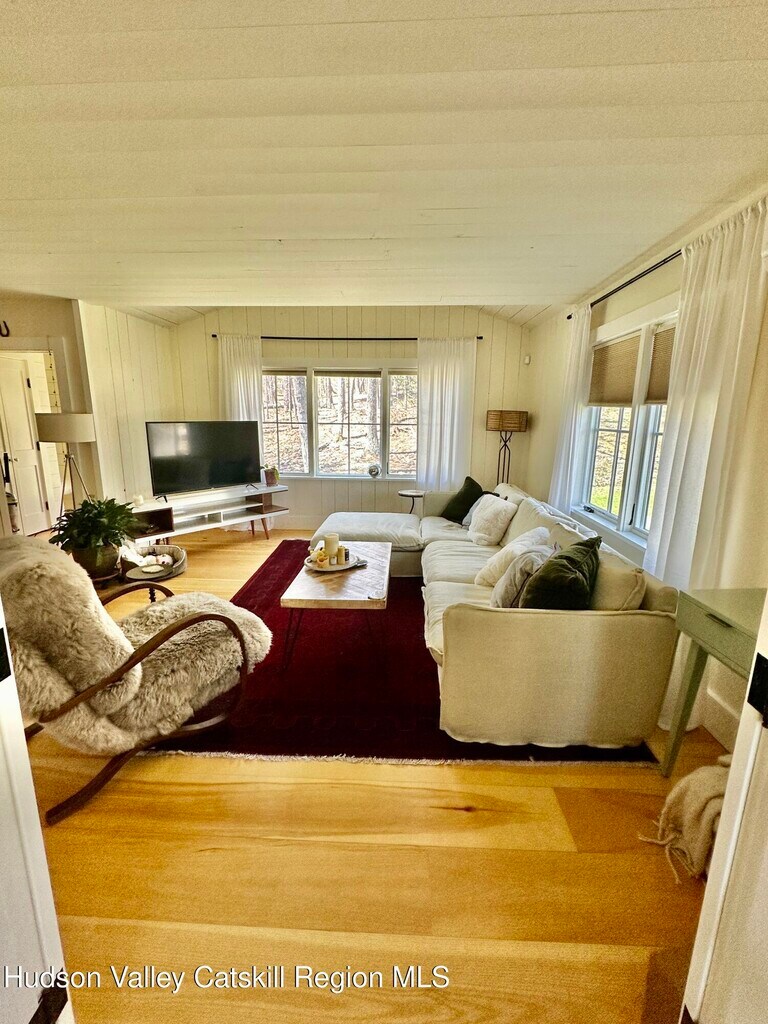 Privately nestled in the woods,yet just a short distance from Woodstock Village,this just completed total restoration and modernization offers finest in quality finishes throughout. Open main level design ideal for your lifestyle features complete chef's kitchen with huge farmhouse sink,slide out pantry,top of the line appliances,and access to outside ideal for placement of a grill. Living area features includes wood burning fireplace,and amazing light which pours through every room reflecting off gleaming wide plank hardwood floors. Office/studio/ guestroom on main level with adjacent full bath featuring a walk in shower. Custom designed staircase leads to the second level offering two spacious bedrooms with partial vaulted ceiling and full bath. Additional features include delightful 'mud room' entry with closets; screened porch for leisurely enjoyment truly brings the privately surrounding wooded surrounds into this home. Property available as of May 1 Lease term is one year or longer. Tenant pays utilities. Water is well. Photos reflect home as presently occupied by tenant and vacant previous to occupancy. Window blinds are being left,as well as firewood for your first fire. All showings are accompanied,so please give advance notice.
