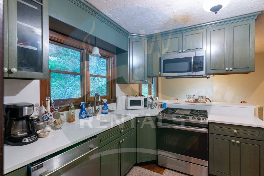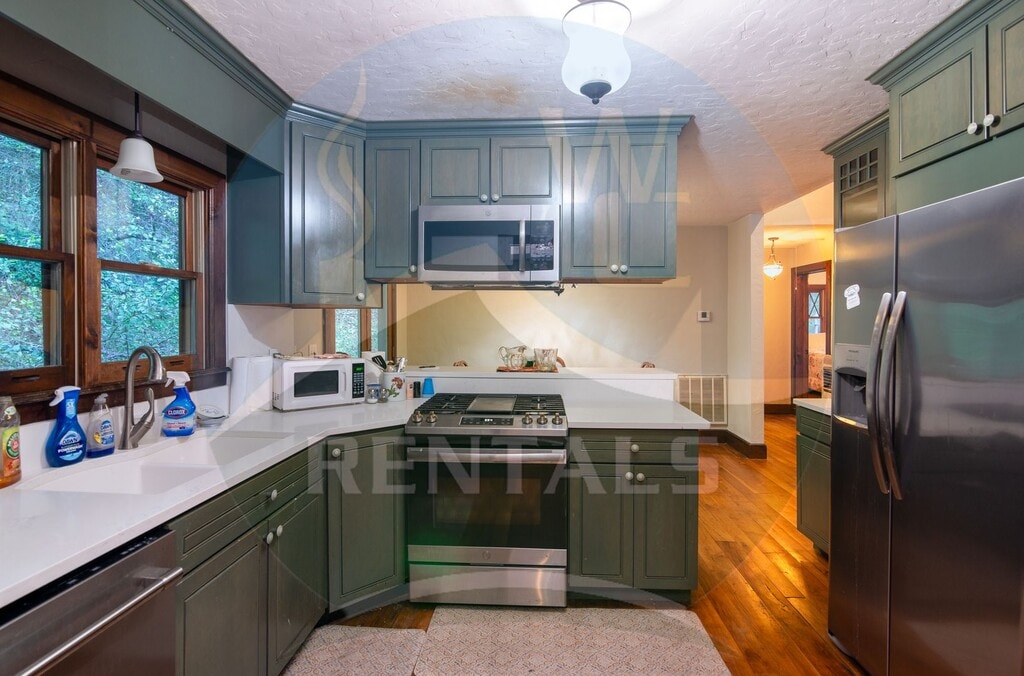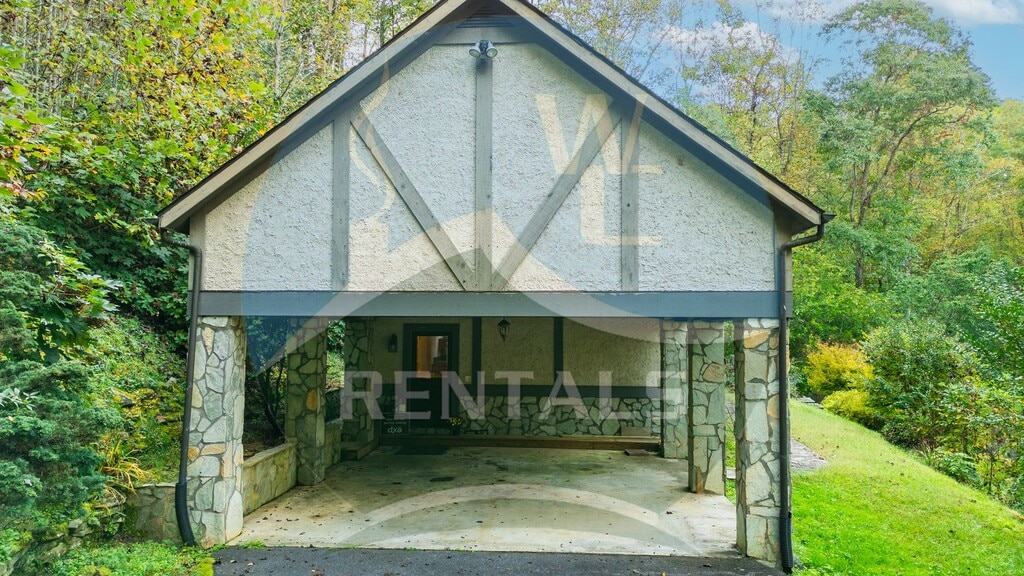 Regal English Tudor home near Castle Lady Hawk in Cullowhee available now for year-long lease. Surrounded by the magnificent Blue Ridge Mountains and minutes from Cedar Cliff and Bear Lakes is this beautiful 3 bedroom 2 bath house. Paved access and a 2 car carport for your convenience. The home features a Chef's Kitchen with Quartz countertops, new appliances, Gas cook Stove, pantry and large dining room for entertaining. Outdoor stone courtyard with fountain and firepit for cozy evenings. Beautifully tiered stone garden paths for flowers and gardens. The rent includes Well Water & Septic, Lawn Maintenance and Internet with Frontier. Tenants are responsible for Electricity, and trash removal. The home has central heat and air conditioning as well as a gas logs fireplace and gas monitor heaters, the hot water heater and stove is also gas powered, includes Washer & Dryer. Tenants will need to start an account with Blossman Gas. Pets accepted with Owner approval, 2 pets max with a $350 non-refundable pet fee for each pet. No Students and No Multiple Roommates. To Rent with Western Carolina Rentals you will need to have a 650 Fico Credit Score, 6 years of established credit, No Criminal Background & paystubs of 3 times the market rent in Income per month. **This house is rented exclusively through Western Carolina Rentals, Inc.** Don't be a victim of SCAM! We will never ask for a security deposit in person, it is paid only on your secure tenant portal once you have applied and been approved.** The home must be shown only by appointment. No drive-byes please. Call us to schedule an appointment at .
