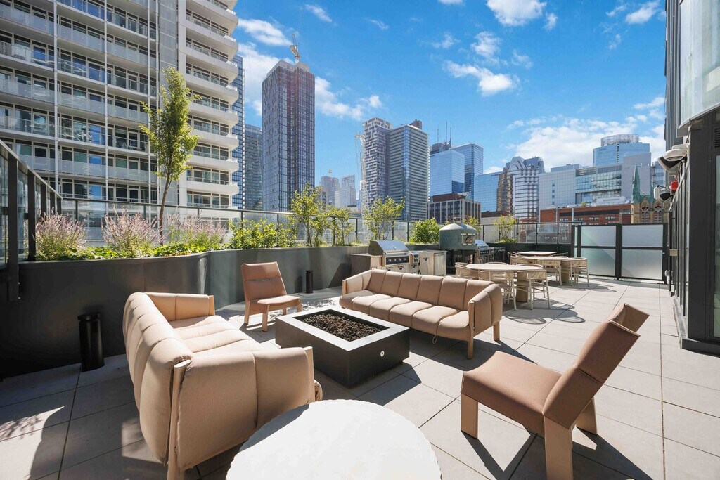Feel at home in this brand-new suite designed for modern downtown living. Completed in Q3 2024, this fully furnished suite offers a stylish and comfortable layout. This suite is designed with modern elegance and comfort in mind, featuring bright, open layouts with large windows that fill the space with natural light. Contemporary finishes and thoughtful design details create a stylish and welcoming atmosphere. The suite features functional living areas for both relaxation and work, in-suite laundry, and pet-friendly touches. High-quality flooring and fixtures, combined with smart layouts, make this suite feel sophisticated yet comfortable. Parking options are available for added convenience. The building features resort-style amenities, including a rooftop infinity pool, an arcade and sports lounge with racing and skiing simulators, and a professional fitness center with Peloton machines and an indoor basketball court. For pet owners, the building offers amenities including a self-serve pet spa and a rooftop turf area designed for dogs. Located in one of downtown Toronto’s most vibrant pockets, this suite is steps from Queen TTC station, offering effortless access to the entire city. You’re a short walk from the Eaton Centre, Massey Hall, Yonge-Dundas Square, and the historic St. Lawrence Market, making it easy to enjoy some of Toronto’s top shopping, dining, and cultural destinations. The surrounding streets are filled with cafés, restaurants, and convenience spots, giving the area an energetic yet approachable feel. Housekeeping is provided biweekly at no additional cost. [SI]
