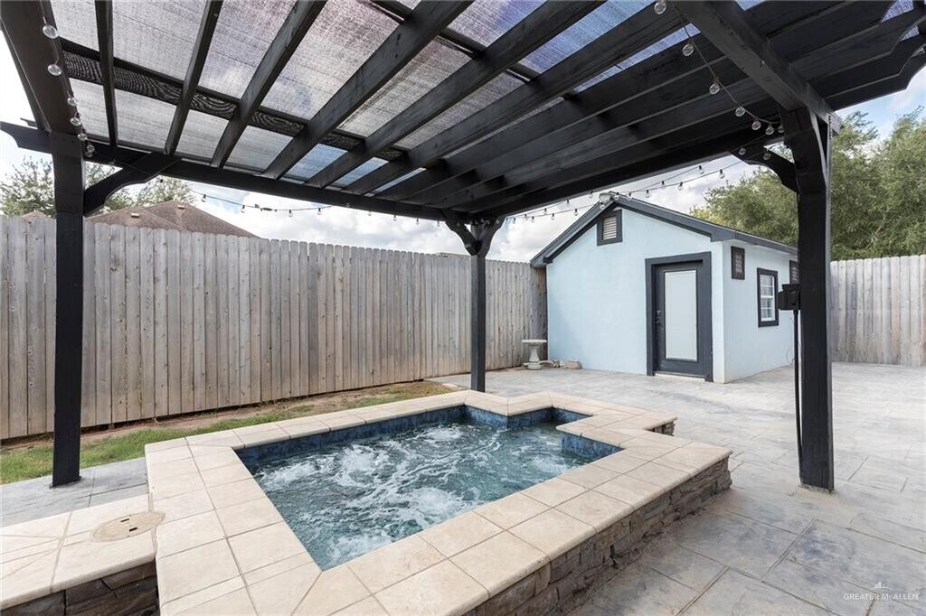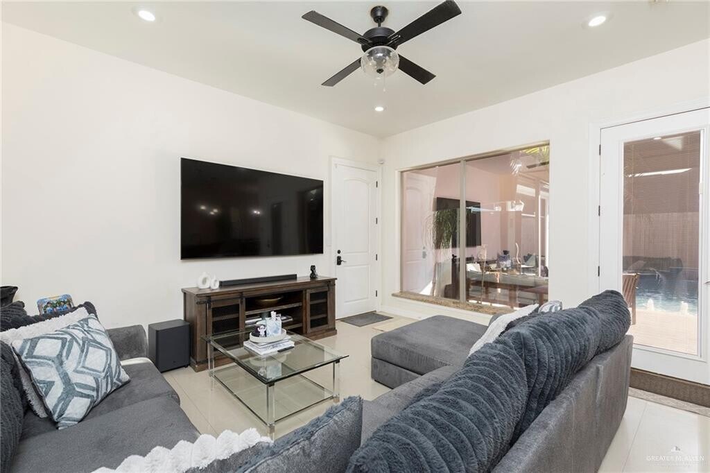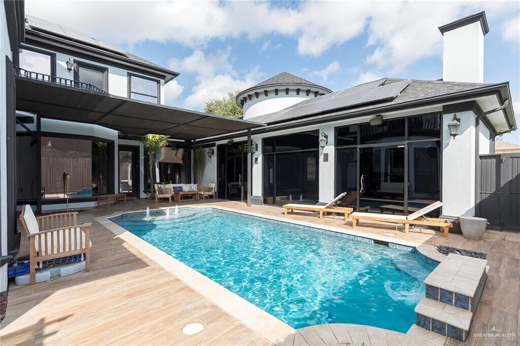 Fall in love with this stunning 4 bedroom home with resort style amenities! Step into luxury with this spacious 4 bedroom,3.5 bath home featuring high ceilings in the living room and large windows that fill the space with natural light. Enjoy a dedicated theater room for movie nights. Beautiful tile floors all around & granite countertops. Dry sauna & double vanity in the main bathroom. Pool house with wet bar & cozy fireplace perfect to entertain. Outdoor jacuzzi for relaxation. Bonus room outside (12x14) perfect for a workshop or gym. Solar panels to help minimize utility costs. It also includes EV charging station in the garage. Excellent location just minutes from shopping centers,restaurants and schools. This house has everything that you need. Call to schedule your private showing today! Pool & lawn maintenance included. 24hrs notice..