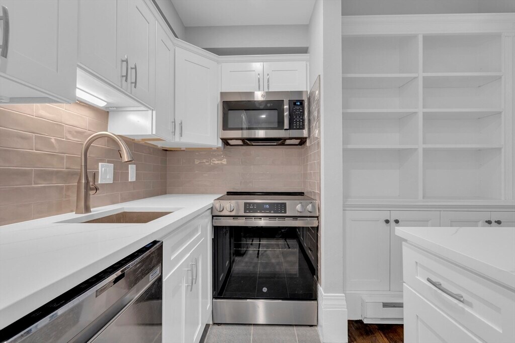 Location,Location,Location! DONT MISS OUT on this lovely modern,totally renovated,parlor level 1 bedroom apartment in the heart of the South End. Enter into your cozy apartment,and you will see very high ceilings that are detailed beautifully with the original crown moldings,tons of natural light that pours in through your big windows facing Hanson Street,and tons of storage throughout. A beautifully renovated kitchen with quartz countertops,new kitchen cabinets,countertops,kitchen island,and high end appliances. Walk into your generously sized bedroom (queen bed recommended),with a huge walk in closet. Off of the bedroom (facing the back so extremely quiet) is a fantastic private deck to enjoy the beautiful weather. Tastefully renovated on suite bathroom with a brand new vanity. This home features : In unit laundry (brand new washer/dryer),fireplace in the living room,and an abundance of storage. Lots of street parking options with resident permit sticker. MLS# 73488747