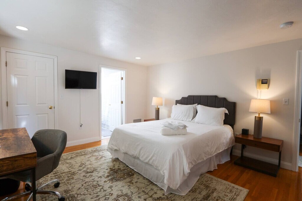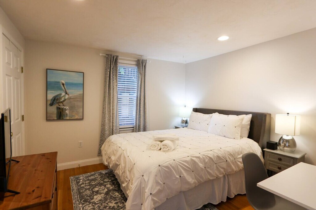 Feel at home in this rare 3-bedroom, 3-bathroom multi-level single-family home in the heart of Cambridge’s Riverside neighborhood, offering modern comforts including central air and unbeatable convenience between Harvard and Central Squares. Step inside to hardwood floors and a bright, open layout. The spacious living room features a leather sectional and a 55-inch TV, while the formal dining room and large kitchen with a wet bar make entertaining easy. An office nook and a full bathroom complete the main level. Upstairs, the primary suite includes a walk-in closet, en-suite bathroom with a skylight, Jacuzzi tub, and a private balcony. In the basement, you will find one washer and dryer available for guest use. Outdoors, a private front yard with a BBQ and seating area offers a peaceful urban escape. Parking is available in the private lot right behind the building for $15/night. Pack n' Play and high top chair are available upon request for $10/night. Parking is at a first come first serve basis and has to be reserved ahead of time to guarantee a space. Riverside is a charming and historic neighborhood near the Charles River, with easy access to local shops and restaurants along Massachusetts Avenue and quick commutes to MIT, Harvard, and Cambridge College. You'll find yourself just 0.4 miles away from the Red Line Central Square station, as well as Whole Foods and Trader Joe's. The neighborhood is brimming with shops, restaurants, and cafes, ensuring you'll always have something exciting to explore. It is easily accessible to the bustling Longwood Medical area hospitals, Harvard University and MIT. The location has a walk score of 91/100 and is described as a walker's paradise with excellent transit. There is a $150 lost key fee and $100 lock out fee. Should your stay extend beyond 28 days, there will be an adjustment in the cleaning fee. Includes desks in each of the guest bedrooms. Registration Number: C [SI]