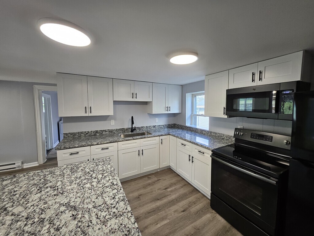 Copy and paste the following link into your browser to view a 3D tour of the home: Where do I even begin? This charming home has had so many upgrades with even more to come! Let's start in the kitchen as that is the heart of the home. Brand new, gorgeous granite countertops, soft close cabinets with modern hardware, farmhouse undermount sink, huge island, tons of counter and cabinet space, brand new appliances....the list goes on. The island offers plenty of space to pull up a couple of stools and enjoy meals but there is still enough room to put a dining room table for those large family gatherings. Within the kitchen space, there is a half bath with new everything. From commode to lights. From the kitchen to the front of the house, you will find the "smaller" living room. While the white painted brick fireplace is stunning, it can only be used decoratively. The chimney on that fireplace is capped so it is not functional. Past the front door, is what is considered a bonus room. You can use it as a primary first level bedroom, an office, nursery, playroom, whatever suits your needs. Going back to the kitchen, to the side of the house is a very large family room. Two separate slider doors offer access to the side and the rear of the home. You'll find your private patio out back where you have tons of space for outdoor entertaining along with ample parking for your guests. That wood stove there in the corner, it is being replaced with a brand-new pellet stove. Such an amazing feature and will help offset the heating costs with the electric baseboard heaters throughout. Tenants will be responsible for having the pellet stove serviced and the chimney cleaned annually. To the rear of the home, you'll find a storage area that can be utilized as a pantry, hanging area for clothes, even put a desk or gaming table in there! Through that area, with separate access through the kitchen, you'll find the largest laundry room ever. The washer and dryer are included with the home. Going upstairs, you'll find 3 bedrooms. 1 being a large primary bedroom, with separate hallway access to another bedroom which also meets at the full bathroom. Again, new everything: tile surround, modern fixtures and stunning flooring. On the way to the bathroom, in the hall, is a walk-in closet large enough for at least 2 of the bedroom occupants to share. There is a third bedroom toward the front of the house as well. Every overhead light in the house has been replaced with either an LED ceiling fan or a flush mount LED light. New LVP flooring is installed throughout the house. Beautiful, neutral gray walls make the white trim truly pop. New vinyl windows are being installed as well as a new front door. This house has tons of space and where it lacks for closet space in the bedrooms, it truly makes up for with additional storage options. Down to the details: Tenant is responsible for all utilities which include electric, water, sewer and trash. A FREE application must be submitted on our direct website at If you are pre-qualified, we will reach out to schedule a showing for you. Incomplete applications will not be processed. Small dogs will be considered with an additional, non-refundable pet fee of $500.00. Pet rent would be determined at a later date. Size and breed restrictions will apply. I'm sorry, but we cannot accept cats at this property unless they are ESA or a service animal. Proper documentation would be required for ESA and service animals and approved through Pet Screening. Feel free to reach out to Katie with any additional questions. At S & S Property Services, we strive to provide an experience that is cost-effective and convenient. That is why we provide a Resident Benefits Package (RBP) to address common headaches for our residents. Our program handles the required renter's insurance, identity protection, utility set up, credit building, rent rewards, and more at a rate of $30.00/month, added to every property as a required program. More details upon application. Total Monthly Payment (Rent + RBP)*: $1,980.00 *If you provide your own insurance policy, the RBP cost will be reduced by the amount of the insurance premium billed by Second Nature Insurance Services (NPN No. 20224621).