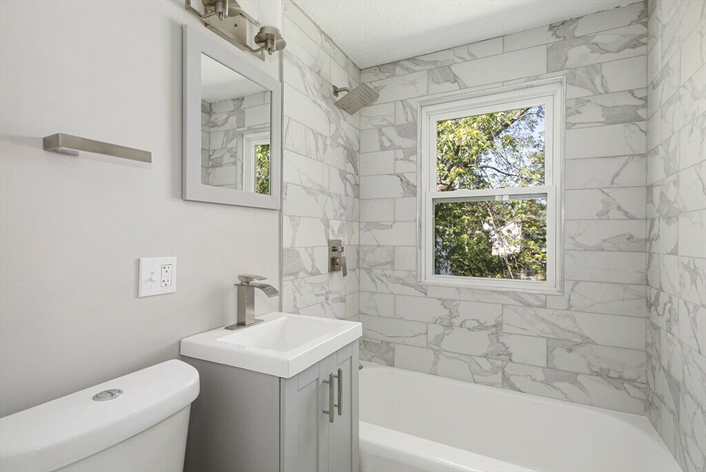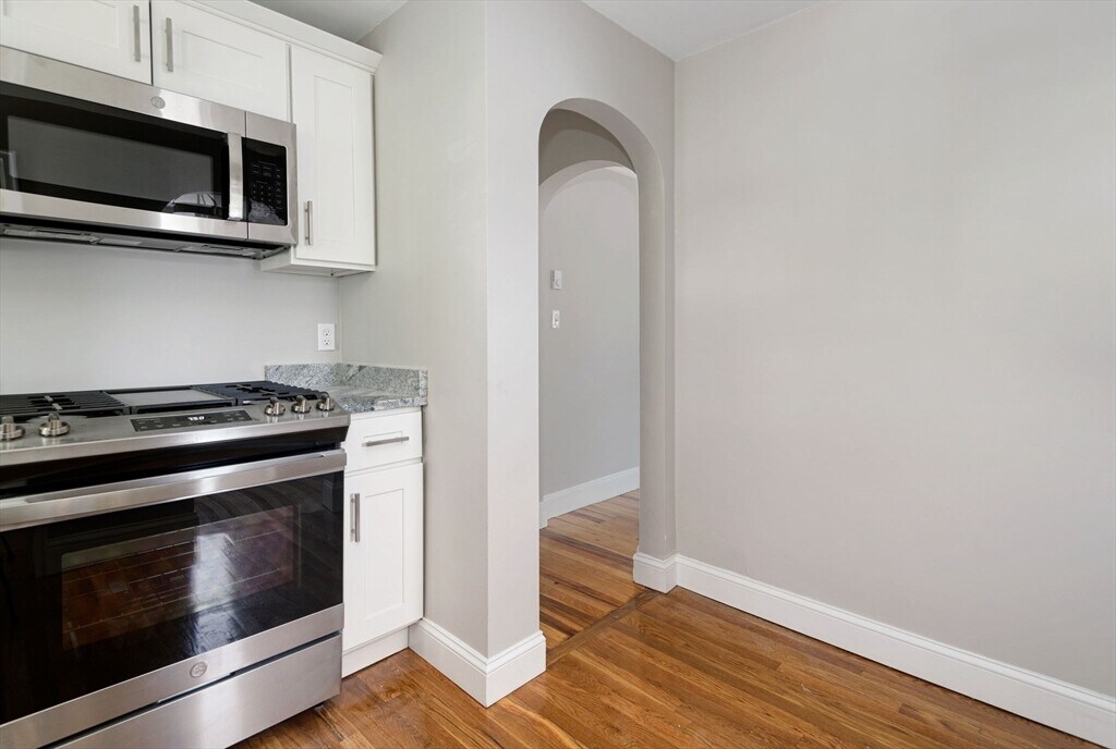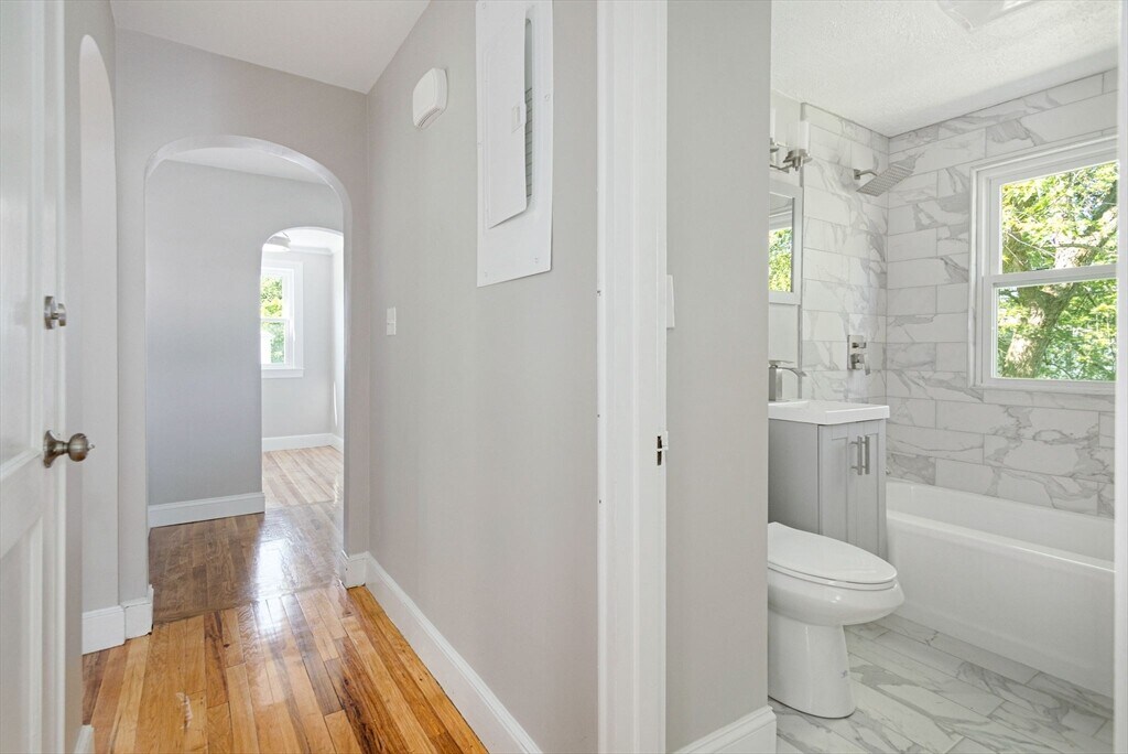This beautifully renovated,light filled West Roxbury apartment offers modern comfort on a quiet,tree-lined street. The updated kitchen features stainless steel appliances,including a five burner gas range,while the sleek bathroom is finished with marble tile. Hardwood floors run throughout the main living space,which includes two bedrooms,plus a finished basement flex area ideal for a family room,home office,or gym that includes a full bathroom. Enjoy easy street parking and a peaceful setting with natural surroundings,all within city limits. Conveniently located approximately 0.3 miles from Centre Street shops,with easy access to the VFW Parkway,and about 0.8 miles to the MBTA Commuter Rail. MLS ID 73506611