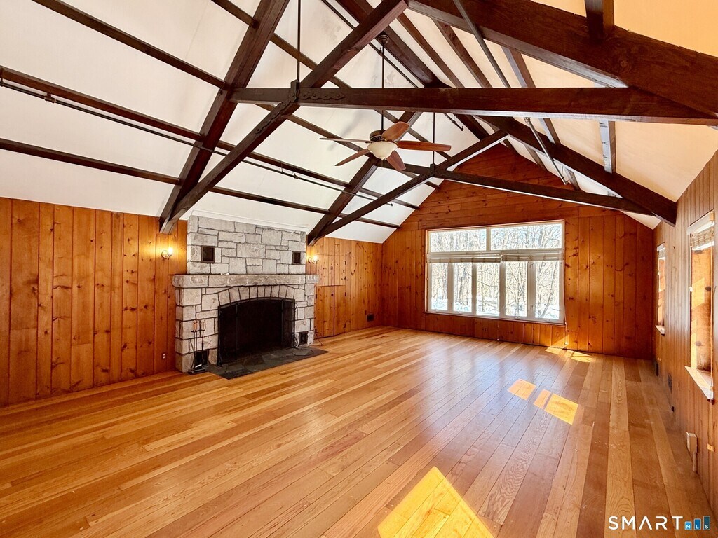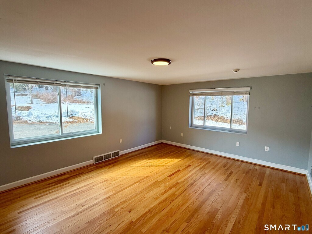 Call for Availability - Enjoy abundant living space in this charming 4-bedroom, 2.5-bath Cape-style home set on a private 2-acre lot in the peaceful rural setting of Harwinton, CT - just minutes from Route 4 and nearby shopping. The main level features a large living room with cathedral ceilings and a stunning stone fireplace, a spacious kitchen that flows into the main living areas, and a dining room with walkout access to a brick patio overlooking the expansive private yard. Three bedrooms, a full bath with tub/shower, main-level laundry hookups, and two additional flexible rooms perfect for a home office, guest space, or storage complete the first floor. Upstairs offers a private primary bedroom suite with a full bath featuring a shower stall, plus a bonus room ideal for an office, nursery, or extra storage. Gleaming hardwood floors run throughout. Additional highlights include a huge unfinished basement with abundant storage, ample driveway and courtyard parking, and a setting nicely tucked back from the road for added privacy. Pets may be considered for an additional fee at owner's discretion. Enjoy country living with space, privacy, and convenience! MLS# 24156694