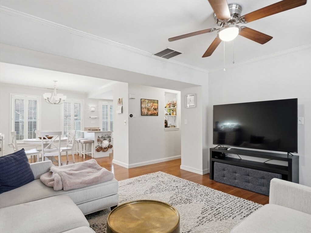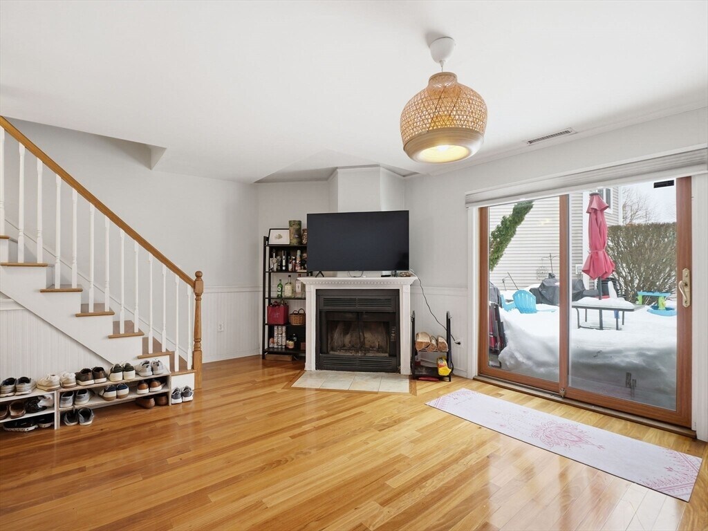 Gorgeous three-level townhouse in desirable Adams Village. This unit perfectly balances modern style with functional living,starting with a first-floor flex space featuring a cozy fireplace and direct walkout to your private back deck—ideal for a home office or den.This level also includes a contemporary half bath,laundry,and garage access. The second floor offers a spacious open-concept kitchen and living area with flowing hardwood floors,modern light fixtures,and ceiling fans. The kitchen is finished with white shaker cabinets,granite counters and convenient countertop seating—perfect for casual dining or entertaining. The third level includes two generous bedrooms and a full bath. This home is equipped with central AC and efficient gas heating for year-round comfort. Easy access to local favorites like Lucy’s American Tavern and Landmark Public House minutes from 93 and the Neponset River Parks. MLS# 73502485